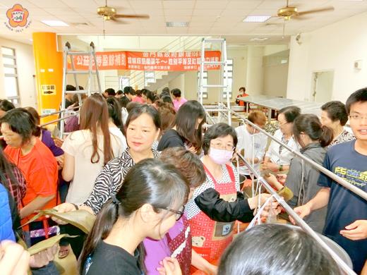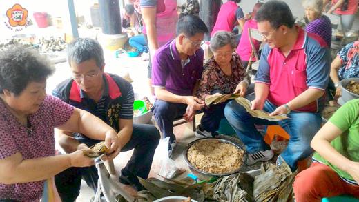 片片粽葉情,粒粒糯香飄,端節前夕,金門縣金城鎮鳳翔新莊社區發展協會昨在「宏德宮」舉辦「金雞報喜迎端午」慶祝活動,除了發動社區民眾包肉粽分享住戶,也趁機敦親睦鄰分送附近長輩食用。 鳳翔社區是金門最具規模的社區,每年3節都會在「宏德宮」廣場辦活動,昨日這場「金雞報喜迎端午」慶祝活動,不僅透過社區民眾交流聯誼,也藉由優良傳統的薪傳,凝聚了社區的向心力。 這項社區包粽活動,由鳳翔新莊社區發展協會主辦,一早理事長蔡金珊即帶領社區民眾張羅包粽的大小細節,上午10時許,包括立法委員楊鎮浯辦公室副主任翁克強、烈嶼服務處主任洪學文,縣府參議甯國平、秘書許金象及金城鎮代會主席陳天成、副主席郭永隆也陸續到場向社區民眾賀節致意。 甯國平在代表陳福海縣長向社區民眾賀節時表示,隨著傳統的式微,很多年輕人都已不會包粽子了,連日來走訪各社區,看到這麼多志工媽媽和長輩發心薪傳包粽子技巧,實在值得讚嘆和肯定。 昨天參與社區活動的婆婆媽媽泰半是經驗豐富的包粽子能手,只見她們手法嫻熟,折粽葉、放糯米、塞餡料,一氣呵成,靈巧快速。不一會兒,一個個綠瑩剔透的三角形粽子魔術般的呈現在大家面前。 幾位對傳統包粽有興趣、初學乍到的小朋友也紛紛向「老手」們請益,在「老師」的指導下,大家的學習興致加倍高昂,儘管包出來的形狀千奇百怪、美醜不一,但幸福快樂的笑容卻洋溢在大家臉上。 帶著香味四溢的粽香,許多初次參與活動的民眾都說,「下次還要再來」,而藉著學習和互動,大家也希望經由鄰里間情感的交融,共創一個更和諧、更美好的社區。