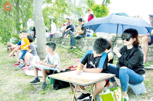 在昨天的2017金門縣第九屆端午節龍舟競賽活動中,除了有激烈的龍舟競渡重頭戲,並有才藝表演和安全射箭之外,也舉辦有「五月五·慶端午」寫生比賽,吸引許多國小學童和幼兒園幼生報名參加,在家長陪同下沿著雙鯉湖畔架起畫板,觀賞著龍舟競渡和美麗的湖景,一筆一畫的描寫在畫紙上,細心的彩繪顏色,畫出心中最漂亮的端午節景緻,構成一幅幅親子畫面,非常的溫馨感人!