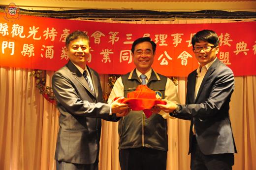金門縣觀光特產協會昨天隆重舉辦第三屆原任理事長王建順、新任理事長李翌漳交接典禮,並與金門縣酒類商業同業公會結盟,期發揮加乘效果,創造金門更美好的觀光與特產業的願景。金門縣副縣長吳成典到場致賀和致詞,他希望不管觀光、產業和酒業,均能珍惜情緣,攜手往前走,共同為金門努力,多做一點事情,每一分都會有效果,讓金門縣政建設發展更美好! 觀光特產協會原、新任理事長交接典禮昨天下午六時三十分,假金城鎮的葡京餐廳舉行,由電音三太子揭開序幕;隨即進入交接典禮,在吳成典見證下,原任理事長王建順與新任理事長李翌漳完成交接,在場貴賓給予祝賀。另,觀光特產協會也與酒類商業同業公會交換禮物,完成兩會結盟典禮儀式,攜手共同為觀光特產業發展努力。 吳成典表示,金門縣觀光特產協會與金門縣酒類商業同業公會結盟,形成金門觀光、特產業的重要命脈,並說金門有好、有不好之處,尤以金門在轉變之中,並逐步逐步往好的方向發展,且需要整體的發展,改變質跟量,大家一起來努力,不管觀光、產業和酒業,珍惜情緣,攜手往前走,共同為金門努力,多做一點事情,每一分都會有效果,讓金門縣政更美好! 縣府觀光處處長陳美齡說,特產對金門地方觀光是很重要的產業,而且旅客對金門觀光印象是來自特產業,可見特產是金門觀光的品牌;同時,她希望在原新任觀光特產協會理事長帶領之下,金門的觀光、特產業一定會更加發展起來,也期待大家一起努力。另,陳美齡也指出,今年夏天將推出音樂季帶動觀光,自七月起至八月止,帶動金門觀光及特產業,並且為金門觀光加把勁,共創金門觀光和特產業的美好願景。 新任金門縣觀光特產協會李翌漳說他對觀光特產有著一份感情,投入觀光特產行已有一段時間,並認金門觀光與特產必需結合在一起的,來金門觀光就是要把特產伴手禮帶回去! 李翌漳說對金門觀光特產有三個願景,一是在原任理事長王建順打下的基礎和自己的願力,把觀光特產協會理念發揚光大、永續經營;二是希望扮演好金門觀光特產與政府的溝通橋樑,推動觀光特產計畫行動,讓大家都可以看到金門觀光特產;三是台灣及大陸一帶一路的國家都需要去接觸,願帶著觀光特產行業走向舞台,讓全世界都能看到金門觀光特產特色。 金門縣酒類商業同業公會理事長陳再德表示,酒類公會也是觀光與特產之一,希望透過與觀光特產業結合,發揮相輔相成的加乘效益,並把餅做大、擴充市場,為金門的觀光出點力;而且,陳再德對於金酒市場,他是看好的,也希望對於金酒行銷,也能提出一套配套措施! 原任金門縣觀光特產協會理事長王建順說,經過擔任六年的觀光特產協會理事長,對於金門觀光產業開發有著很大的空間和地方;在任內,他表示往台灣、大陸一直都在推介,讓兩岸各界朋友來認金門觀光特產,並把旅遊放進來,形成一條龍的配套方式。 王建順指出旅遊要跟產業多結合,尤以金酒帶著地方產業往前去,希望這個平台是大家的平台,因為金門是離島,必需要有更多人流量,強調金門走出去是對的,也把金門觀光產業帶出去。同時,他相信不多的幾年,金門絕對是一個大利多的地方。 此外,在交接和結盟典禮上,吳成典也代表縣長陳福海致贈賀匾,祝觀光特產業會務興隆,創造金門觀光產業經濟遠景。另,觀光特產協會也聘王建順為榮譽理事長,以及頒發理監事當選證書、優良廠商、感謝狀等,整個交接和結盟在溫馨氣氛下,劃下圓滿句點,也是創造觀光特產業更美好願景的開始!