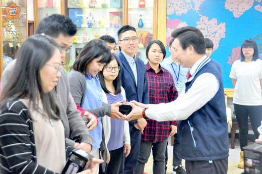 金門縣縣長陳福海接見105年地方特考錄取分發本縣職缺的十六位新進人員,除一一唱名與他們認識外,也了解他們的生活與工作狀況,並要人事處提供「溫馨的聯繫管道」,協助在崗位上發揮所學所長,為金門做一點事,也為縣政建設共同打拚努力! 縣府人事處表示,105年地方特考錄取分發本縣職缺十六位新進人員,他們來自全國各地,對於金門環境的熟悉程度不一,但相信應能很快進入狀況並適應在地的生活及長久為金門努力,新進人員包括: ◆三等考試六位:教育處科員李松晏、主計處科員黃淑貞、地政局科員江筱瑩、地政局技士李亞寧、自來水廠技士黃仁國、林務所技正呂沛旻。 ◆四等考試九位:港務處辦事員林睿祺、觀光處辦事員鄭天惠、烈嶼鄉公所辦事員陳俊仁、稅務局助理稅務員林函儀、政風處辦事員洪偉滄、地政局技佐張怡姍、港務處業務員許惟理、工務處技佐黃聖裕、金寧鄉公所技佐黃宇羲。 ◆五等考試一位:社會處洪建偉。 陳縣長在接見十六位特考新進人員,強調金門正在翻轉及目前的兩岸局勢,尤以長期以來金門與廈門兩岸建構友善交流合作,構成金門發展及打造一個好環境的機會,並指出金門扮演一個和緩、友善、和平的關鍵角色。 金門過去是一個戰地,現在的金門已是昔非今比!陳縣長表示金門發展建設已具基礎,但需要新血輪加入,發揮螺絲釘的角色,並說與十六位新進同仁有緣份,也請人事處建立師徒制度,協助新進人員在最快時間內進入縣府團隊,在崗位上發揮所學所長,為金門做一點事! 陳縣長指出縣政府團隊是一個大家庭,但每一工作崗位都是挑戰,或許剛開始不太熟悉,陳縣長鼓勵發揮所長,與金門結下緣份才會來到金門服務,來到金門就是「金門人」。 另,陳縣長說他在金湖鎮長任內,就請金湖鎮民以身為金湖鎮一份子為榮,透過人事協助和服務,讓同仁樂在工作、樂在服務,進而產生價值!另,在金酒員工座談時,傾聽任何聲音,並使他們成為金酒公司一份子為榮;在縣長就任後,他也希望每一位員工都以身為縣政府為榮,陳縣長並從自己做起! 在接見中,陳縣長也一一唱名,與每一位新進人員認識,了解目前的工作局處單位和環境,以及生活環境,並問說為什麼會想考到金門工作服務?有說是聽學姐介紹金門很好,學姐也在金門服務,就興起來金門服務。也有一位新進人員說他喜歡金門就考進到金門,成為一位「新金門人」。另有一位外婆在金門,他考上了,也可以與外婆共同生活,並有幾位本地縣民考上特考,與其他新進人員一樣,陳縣長說都是頂尖的優秀人才,為縣府增添新血。 金門自古以來文化底蘊深厚,陳縣長也祝福每一位新進人員有一個快樂學習環境,與團隊結緣,認真用心為民服務,相信金門是一個有福氣的島嶼,有機會來到金門,幫金門、社會、國家做一點事和貢獻,並要人事處給一個「溫馨的聯繫管道」,陳縣長也給新進人員LINE,歡迎他們隨時提供建議。 最後,陳縣長贈送每位新進人員一盞「光明之燈」祝福和道賀金榜題名,也再次歡迎新進人員加入縣府大家庭,一起幫金門幸福島嶼,讓金門更健康,並讓金門在兩岸扮演一個更重要的關鍵角色,不僅金門好、台灣人民好,兩岸人民和平在金門發光發亮! 此外,縣府人事處表示新進人員有些是處於為民服務的第一線,負有傾聽民眾需求,協助解決問題的責任;有些是推動建設發展的執行者,為健全本縣的軟硬體基礎而努力;有些是負責溝通協調的幕僚角色,藉由專業的知識與分析,為長官決策提供建言。但無論是擔任那一種角色,除應具備「廉正、忠誠、專業、效能、關懷」的文官核心價值外,也期許他們能多站在民眾的立場思考,更積極主動、認真負責、溝通協調、迅速回應,為縣政的整體發展加分!