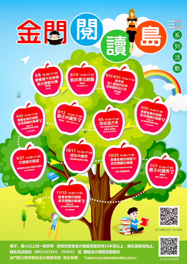 推廣閱讀,強化鄉鎮圖書館功能,讓鄉親從書海中豐富學習和視野,金沙鎮公所7月有「分享好書送獎金-小小說書人」活動,八月起每週六有「吹夢巨人說故事」。另外,八月八日起至十一月,下午時間與金門文化局縣立圖書館聯合辦理13場《金門閱讀島系列活動》(見活動海報),即日起受理網路線上報名或親至圖書館及電洽353354向圖書館報名。報名網址:https://forms.gle/aCwWW1aTrR2zVcX17。 金沙鎮圖書館5月起辦理「分享好書送獎金」活動徵件,共計有58件作品參與,7月並陸續邀請報名經錄取之小小說書人到圖書館分享好書。八月起逢父親節,金沙鎮圖書館也規劃「吹夢巨人」說故事活動,邀請故事達人到場說關於爸爸的故事繪本,亦將展出正音、音標班學童製作的父親節作品,透過閱讀向爸爸們賀節。時間為八月起每周六(8\1、8\15、8\22、8\29)上午10時至11時,歡迎鄉親、學子到場參與。 金沙鎮鎮長吳有家也指出,八月起在金門文化局縣立圖書館協助下,聯合辦理之《金門閱讀島系列活動》,從8月8日起每周六下午3時起,為期至11月底,共舉辦13場閱讀活動,即日起歡迎鄉親報名參加,可透過網路報名,到圖書館現場報名或電話報名,金沙鎮圖書館上班時間為每周二至周日,敬請鄉親大手牽小手一同來閱讀,洽詢電話353354。 金沙鎮圖書館也說明,8月起各項活動如下,各場員額有限,歡迎有興趣之民眾事先報名參加,場次及時間如下: 8月8日《慶祝父親節-揉情萬千的爸爸》,邀請金沙鎮社區烘焙師王秀勤,帶領親子製作披薩。歡迎爸爸和孩子一同到場做披薩,活動招收親子20組,須預先登記。 8月15日《說故事玩創藝》,由地區美勞手作專家簡菁文擔任講師,將配合故事讀本-小年獸的好爸爸,指導中年級以下小朋友以進階捏塑黏土技巧,呈現故事人物,預計招收20組,須預先登記。 8月22日至8月23日,《動手做,進入調酒的世界,居家調飲自己來》,由金城夢酒館調酒師李柏緯到場指導,參加者學習閱讀調酒酒譜,調出屬於自己的調酒。招收3組,每組6人,計18人,須預先登記。 8月30日、9月20日、10月25日、11月15日起為《乘著音樂的翅膀,享受閱讀的樂趣系列》活動,由金湖國中、金湖國小國樂指揮周聖文與金門愛樂民族管弦樂團成員,以講解式音樂會的形式,介紹膾炙人口的經典樂曲,引領大家認識國樂文化。 9月5日《我從遠方來--新住民適應與奮鬥故事》,邀請新住民李麗美、鄭僑螢、陳美有,分享在金門生活學習奮鬥的經驗,將透過飲食、服裝、節慶等習俗,讓大家體驗新住民的母國文化。當天提供15組手做美勞,須預先登記。 9月12日、11月7日《親子共讀系列》,邀請地區熱情的故事志工黃瑞玲、顏甄珍分享對話或角色扮演等,讓與會民眾感受親子共讀或全家共享閱讀的樂趣。 9月27日《石獅爺的願望》,邀請陳雅馨老師帶領金湖幼兒園師生共讀金門音樂繪本-風獅爺的願望,透過說、唱、跳、手作與遊戲的方式,呈現幼兒園豐富有趣的教學成果。 10月17日《師生共讀秀》邀請剛獲得杏壇芬芳獎殊榮的陳高馨老師,帶領述美幼兒園唸唱閩南語童謠與「桶鼓」節奏韻律唱跳,呈現幼兒園生動有趣的教學活動。