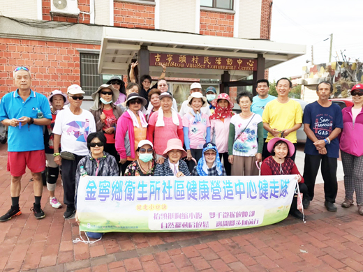 金寧鄉衛生所社區健康營造中心為志工伙伴舉辦健走活動,傳遞運動有益健康等觀念,一行卅餘人步行慈湖,欣賞環湖景觀,遠眺夕陽西下美景,在運動中豐富身、心、靈,好不快樂。並落實「抬頭挺胸縮小腹、雙手微握放腰部、自然擺動肩放鬆、邁開腳步向前行」健走小口訣,分享推廣民眾培養運動好習慣,即可將健走融入於生活中。 要活就要動,金寧鄉衛生所社區健康營造中心辦理健走活動,健走範圍由慈堤觀景台→三角堡→雙鯉溼地自然中心→北山聚落→李光前將軍廟→東坑聚落→湖下海堤→慈堤匣口。志工一行在隊長帶領下健康出遊親近大自然,讓彼此交流分享服務及生活心得,並了解運動對健康的好處等資訊。 金寧鄉衛生所指出,健走是很好的入門運動,不需特殊裝備,只要穿著輕便服裝、運動鞋,並記得「抬頭挺胸縮小腹、雙手微握放腰部、自然擺動肩放鬆、邁開腳步向前行」健走小口訣,即可將健走融入於生活中。每天健走15分鐘好處多多,除了能夠改善各項身體機能,運動時腦部產生的腦內啡,還能夠使人心情愉快、舒解壓力。長期維持每天運動15分鐘的習慣,更可控制體重並延年益壽。