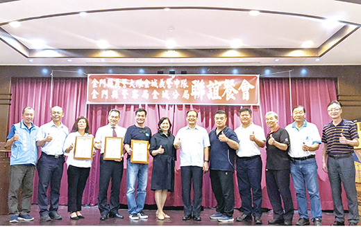 金門縣義勇警察大隊金城中隊長由蔡添祿先生出任,金城警分局特規劃辦理授證儀式,縣警局局長張國雄、金城警分局分局長李益杰、以及義警大隊長陳緣姿以及到場的貴賓見證,並期勉蔡添祿中隊長持續秉持熱忱,帶領義警弟兄協同金城警分局共同為地區治安做出貢獻,創造幸福金門島嶼。 授證典禮暨年度義勇警察聯誼餐會於27日晚間6時30分在金寧鄉盈春閣餐廳舉行,包括縣警局局長警察局長張國雄、金城分局分局長李益杰、義警大隊長陳緣姿,以及民防大隊長呂瑞泰、金城鎮鎮長李誠智、金寧鄉鄉長楊忠俊、金城代表會主席陳天成、縣府縣民服務中心主任洪學文等貴賓到場見證祝賀,過程溫馨融洽。 授證典禮中,李益杰分局長除了介紹新任中隊長蔡添祿相關要職,並對其本於熱心公益,促進義勇警察團結合作,發揮義警互助互愛精神,及落實推動襄助警察勤務工作等理念,並願意出任中隊長一職,表達感謝之意,同時由義警大隊長陳緣姿現場頒發中隊長蔡添祿、副中隊長蔡成傑及幹事翁明惠等人當選聘書。 張國雄局長與陳緣姿大隊長致詞時也對於新任中隊長蔡添祿積極認真推動義警工作,及協助警察單位各項治安、交通工作上幫助,均能圓滿順利,表達肯定之意;同時祝福蔡添祿中隊長及蔡成傑副中隊長日後繼續秉持熱忱,配合金城警分局推動警民合作,帶領義警弟兄協同警察單位共同為地區治安做出貢獻,創造幸福金門島嶼。 分局長李益杰表示,警力有限,民力無窮,各分駐(派出)所能凝聚義警弟兄的向心力及對社區治安的關心,更能拉近警民關係,讓警民一家親共同來維護社區安寧祥和,凝聚社區民眾治安意識,共為社區治安努力。