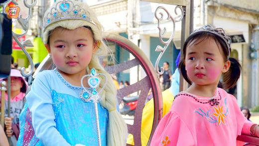 愛爾莎成為藝陣妝人「嬌」點,昨日金城迎城隍繞境巡安,小朋友妝人成為遊行隊伍中的美麗風景,而在一片古裝造型中,其中兩位裝扮成為小公主造型,也成為昨日遊行受人矚目吸睛的焦點。 迪士尼電影「冰雪奇緣」中的女王愛爾莎,是許多小女孩們心中相當喜愛的角色,更是許多小朋友爭相模仿的。昨日藝陣當中,一位小女孩由爸媽妝點成愛爾莎公主的模樣(左),手持權杖,可愛靦腆的模樣相當討喜,也讓沿途觀看繞境的民眾直呼「卡哇伊」。