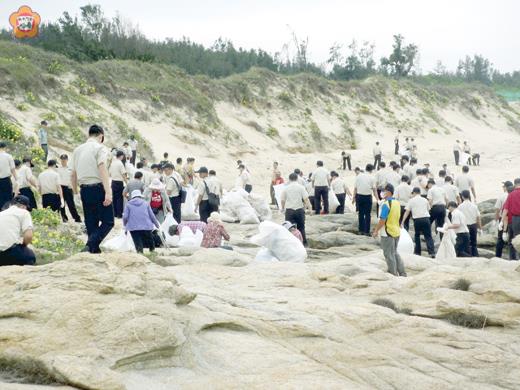 金門縣106年5月份替代役役男定期在職訓練於6日上午8時整假歐厝海灘舉辦,共計有縣府及所屬機關、中央駐金單位替代役役男計200人參訓,除了由金門縣學生校外生活輔導委員會張智芳督導、楊國良教官及孫孝義教官等人,為替代役辦理例行性服裝儀容檢查,本次在職訓練並配合舉辦了一項公益淨灘活動。 這項由縣府民政處主導的公益淨灘活動,深具意義,不僅深化了替代役對環境之關懷及實踐,更加強與社區間的情感聯繫。活動期間,縣府也特別感謝校外會、金城鎮公所及金門國家公園管理處之協助,讓社區海域變得更乾淨,同時歐厝社區發展協會理事長亦動員居民共同參與,為地球環保盡一份心力。 活動現場每一位替代役役男莫不分工接力、揮汗淨灘,每個人也都彎著腰撿拾海邊的廢棄物並進行分類與資源回收,親身體驗用雙手愛護家園及為民服務的美好經驗。 參與活動的替代役役男也紛紛表示,很高興有機會參與本次淨灘活動,更難能可貴的是,藉著這樣的公益活動,大家都體悟到環境保護的重要,而在所有替代役男的動員清理之下,本來滿是漂流物和廢棄物的沙灘,逐漸恢復美麗潔淨的模樣,所有役男心中,都感到無盡的充實感。本次活動於當日上午11點順利圓滿結束。