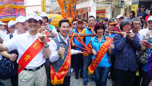 昨(七)日為一年一度的農曆四月十二日,也是「浯島邑主城隍遷治三百三十七週年」,昨日下午開始,後浦小鎮便是一幅熱鬧滾滾的景象,城區街頭巷尾盡是人山人海,信眾手持清香,將街道擠得水洩不通,一起迎接城隍爺出巡。而來自大陸、台灣以及在地的宮廟、神明、藝陣和金城四境等陣頭,還有各地的善男信女隨香其後,沿途不絕於耳的鞭炮聲,神輿、旗輦飄揚,還有各個陣頭表演,掀起迎城隍慶典的最高潮。 為期一個月的「二○一七年金門迎城隍‧浯島宗教文化觀光季」,終於在昨日進入此次活動的最高潮,共有來自兩岸的宮廟,包含台灣全國各地的城隍廟,以及大陸各地宮廟、藝陣,加上在地鄉鎮的宮廟和城區四境參與隊伍,以及旅居台灣跟海外的鄉親,共約有千餘人,也讓昨日的後浦小鎮湧現滿滿的參拜人潮。 慶祝「浯島邑主城隍遷治三百三十七週年」,昨日重頭戲「城隍爺出巡繞境」活動,於下午一時左右展開,由金門縣長陳福海、金門縣議會議長洪麗萍、副議長謝東龍、立法委員楊鎮浯、金城鎮長石兆瑉、浯島城隍廟管理委員會主任委員楊耀芸、台開集團董事長邱復生等人,也到場並虔誠為出巡的城隍爺抬轎或是扶轎,恭敬的陪著城隍全程遶境巡安;此外,來金演講的PCHome創辦人詹宏志,昨也利用機會前往共襄盛舉。 昨日(農曆四月十二)重頭戲來臨,浯島城隍繞境巡安活動於昨日下午一時左右,台金廈各路神明、陣頭、表演隊伍都於城隍廟會師,將城隍廟內外擠得水洩不通,而城隍爺的神輦所到之處,都可以看到兩旁虔誠的信眾持香頂禮,祈求福佑金門。 今年繞境活動也與往年一樣熱鬧非凡,各地宮廟神明、陣頭都到場共襄盛舉,巡安遊行隊伍,依序為:紅綵、遷治紀念旗、了亞、托燈、馬上吹(大鼓吹)、范謝將軍盟會、顏柳將軍盟會、恩主公、關聖帝君、蘇府四千歲、旗牌執事瓜鍻、大鼓吹(中正國小)、董牌爺盟會、文武判官盟會、南管樂隊、香燈、鄉老、道士、香擔、神駒、十音、天女散花(中正國小)、邑主城隍爺、遮陽涼傘、城隍粉閣(由值年境準備)、隨香善信、迎懷堂、舞龍舞獅(中正國小)、高雄浯島城隍廟、金沙腰鼓隊、蜈蚣座協會、西門、鳳翔妝人隊伍、鳳翔跑旱船、南門妝人隊伍、鼓號(中正國小)、北門妝人隊伍、十二婆姐、東門妝人隊伍、東門公揹婆、全國城隍聯誼會進香團、大陸宮廟進香團、柔佛州金同廈會館、巴生雪蘭莪金門會館、金門縣公揹婆協會、金門媽祖會蓮花鼓、金門媽祖會腰鼓隊、高職農工隊、西門境進香團、南門境進香團、北門境進香團、東門境進香團等四十多支繞境隊伍。 每年的迎城隍盛會,均是由金城四境輪值,今年度則是由東門里輪值;而昨日的巡安繞境的隊伍各有特色,連綿數公里之長,繞境的路線也是依循著傳統的香路進行。路線依循網路,自城隍廟請出城隍爺之後,便在眾人抬轎扶轎簇擁下,從城隍廟出發,往紅大埕、光前路六十一巷、外武廟、莒光路一七一巷、關帝廟、中興路中段、中正國小、民權路、縣政府、民生路、中興路、北鎮廟、北門福德宮、昭德宮、模範街、珠浦東路、代天府、莒光路一段、靈濟寺、莒光路、中興路、南門福德宮、光前路、水門睢陽府、天后宮、禹帝廟、網寮,整個巡安路線大約三千八百公尺。 在昨日熱鬧的隊伍當中,除了傳統藝陣公揹婆、十二婆姐等演出之外;金鼎國小扯鈴隊精彩技藝也讓人印象深刻,中正國小也派出百餘位學生逗熱鬧,協助各項遊行隊伍,共同參與遊行,也讓後浦巷道增添熱鬧氣氛。沿途還吸引許多攝影愛好者或文史工作者穿梭遊行隊伍當中,以攝影機或相機捕捉紀錄過程當中的珍貴畫面,為今年度的繞境活動留下歷史鏡頭。 昨日艷陽高照,數小時的遊行更是體力消耗戰,昇恆昌公司、金酒公司、縣聯社、美心工作坊等多個團體也在沿途設攤,分送飲水、飲料給予協助巡安的工作人員為其解渴。 而縣府為了讓無法親自到場體驗城隍威嚴的民眾,也有機會欣賞,特別委託名城有線電視,至少五機作業進行攝錄,多點實況錄影,並同步在地區有線電視的第三十三頻道轉播。另外,網路的使用和行動載具,已成為全球化時代最主流的傳播方式,因此縣府另建置直播網頁,讓大陸及全球的網友們也都能點選網頁後,即時收看繞境網路直播。