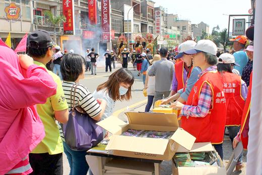 一年一度的四月十二城隍爺出巡,繞巡金城四境護佑黎民百姓,昨(七)日繞境隊伍,各式陣頭、輦轎、彩旗以及隨香信眾絡繹不絕,簇擁踩街,沿途鑼鼓喧天,香煙繚繞,這是金城年度最重要的宗教盛事。 金門縣縣聯社昨日也在民生路上設置攤位,並準備八百份的平安獻納米以及八百份的慈濟祈福吊飾來與看熱鬧以及參與活動的信眾們結緣,希望民眾們將平安米拿回去享用後,可以獲得城隍爺的庇佑。 此外,金門酒廠為了讓隨香信眾能夠將城隍爺的保佑帶回家中,特地現場準備了三百份祈福平安米要分送給民眾,民眾只要至金酒攤位出示手機分享臉書「感動無限小金粉絲團」到個人動態並標註兩位朋友給工作人員確認,即可獲得祈福平安米乙份,信眾也回響熱烈。