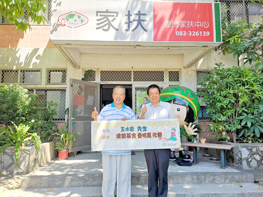 金門家扶中心在兒童扶幼館建館工程期,因適逢新冠肺炎疫情肆虐影響人民的經濟收入,建館經費籌措因而停頓,影響工程進度甚巨。沙美士紳王水彰得知家扶中心窘境後,攘臂號召社會大眾,一同來推動家扶中心扶幼館的完成,為地方兒童福利服務事業,創造下一個服務的里程碑。 王水彰表示,近期看到家扶中心扶幼館工程進度有所延宕,原本預計今年八月要剪綵啟動的兒童扶幼館,至今內裝工程都還沒有開始,心中亦為家扶中心擔心憂慮。探究箇中因素,原來是今年受到新冠肺炎嚴峻疫情的影響,全國各地經濟蕭條,造成社會經濟活動萎縮,影響所及大夥兒的收入減少,社會福利的捐助經費也相對的縮水,家扶中心扶幼館建館費用的籌措,幾近停滯而影響工程的進度。因此,個人起頭攜帶著十萬元的建館專款,親自來到家扶中心獻上個人的心意及祝福,亦期盼能達到拋轉引玉的效果,為家扶中心兒童扶幼館貢獻出一份心力。 家扶中心主任李桂平表示,收到這一份沈甸甸的祝福深感責任重大,家扶中心的兒童扶幼館興建,勢在必成沒有退路,期盼鄉里各界能助一臂之力,讓兒童扶幼館最後的一里路能夠順利完成。