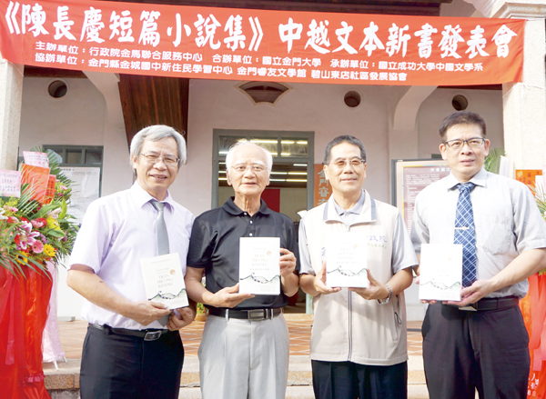 《陳長慶短篇小說集》中越文本第二場新書發表會,昨日下午三點假碧山睿友學校文學館舉辦,現場貴賓雲集,台金藝文界好友齊聚一堂,更有來自越南留學生及新住民參與,並獻唱越南歌曲「隨風飛揚」獻給新書作者陳長慶。楊天澤也致贈「睿友文學館」水彩寫生給「睿友文學館」館長陳長慶,預祝生日快樂,讓陳長慶感動不已。陳長慶表示,金門從戰爭中走出來,你我經歷各階段體制之管制,當砲火遠離更要記取教訓,珍惜和平的可貴,我願一輩子做講述金門辛酸故事的人! 由行政院金馬聯合服務中心出版,陳益源、黎光長主編之《陳長慶短篇小說集》中越文本,繼7月18日在國立臺灣文學館舉辦臺南場新書發表會之後,昨日(7月25日)下午3時起假碧山睿友學校舉辦金門場新書發表,由國立成功大學陳益源特聘教授主持,金馬聯合服務中心執行長翁明志、金門縣政府秘書長陳朝金、金門大學校長陳建民、金沙鎮鎮長吳有家、金門縣議員李應文、董森堡、縣府社會處長董燊、副處長李廣榮、文化局副局長長黃雅芬、科長何桂泉,以及現任國立臺灣音樂館主任翁誌聰、府城觀興文化藝術基金會會長侯明福、國立高雄大學越南籍助理教授裴光雄、金大企管所越南研究生劉氏清安、金城國中校長許維民率領學校新住民學習中心20餘位越南新住民親子出席,身著越南國服並獻唱越南歌曲和主題相互輝映。 新書發表會主持人陳益源介紹指出,《陳長慶短篇小說集》中越文本,收錄〈再見海南島 海南島再見〉、〈將軍與蓬萊米〉、〈春桃〉、〈人民公共客車〉、〈孫麻子〉和〈罔腰仔〉等六篇金門不同年代故事。去年11月在國立金門大學與胡志明市國家大學合作推出越南文版本之後,獲得多位越南文學評論家的熱烈迴響。又在行政院金馬聯合服務中心執行長翁明志、國立金門大學陳建民校長等的鼎力支持,而有中越文本新書之問世,並且在7月18日假台南舉辦第一場新書發表會,受到越南新住民及其子女的普遍共鳴。 翁明志獲邀致詞時表示,《陳長慶短篇小說集》中越文本,符合政府新南向政策之發展,透過新書讓讀者能一起回顧金門的戰地歲月和鄉土民情,領略金門獨特的人文風貌,有助於越南民眾或新住民對金門之認識;後續將會再出版中越文版本之金門文學作家的作品。 金門大學校長陳建民也說,《陳長慶短篇小說集》收錄六篇觸動心弦的故事,所刻畫的人事物及時空背景都圍繞各個時期的金門,透過文字反映了生長在那個時代的島民生活及酸甜苦辣和體制下的禁錮;而且透過他的文字,也把家鄉碧山以及金門的風土人情、不同體制下的歷史事件以及與居民生活情景相結合,用文學、藝術之筆連結和紀錄,讓大家細細咀嚼、體悟。 縣府秘書長陳朝金也指出,《陳長慶短篇小說集》中越文本的出版可以說是紮根工作,透過文字紀錄以及翻譯成不同語言,便利閱讀,有助於將金門的歷史人文藉以向外開枝散葉,讓金門走向世界。 而此次新書發表會,吸引台金藝文界、金門鄉親等到場共襄盛舉。金門縣仙洲薪傳南音社、金門傀儡戲劇團,分別由理事長陳榮泰,團長蔡遠進帶領下以代表金門傳統又精湛的演出;而二十餘位越南新住民親子,身著越南國服(奧黛)到場,來自越南目前就讀於成大中文系博士班的鄭垂莊,也特地獻唱越南著名,由鄭功山(1939-2001)所創作之反戰歌曲《隨風飄揚》,歌詞鼓勵越南人以愛心散播快樂、放下戰爭之哀傷,迎向有希望之未來,並藉以獻給陳長慶,寓意其努力為金門紀錄苦難、化解哀傷;也呼應主題呈現各自文化特色。 此外,金門畫家楊天澤也特別致贈四年前創作的「睿友文學館」水彩寫生給「睿友文學館」館長陳長慶,預祝他8月2日七十五歲生日快樂!金門縣文化局文資科代表也獻花致意,讓陳館長激動不已。 陳長慶表示,感謝鄉親的厚愛和鼓勵以及這塊土地所給予的創作能量。金門經歷砲戰洗禮,你我從戰火中走過來,承受各個時期的體制和管制,心靈創傷、如次等公民等待遇,但我們並沒有因而被擊倒。現今砲火遠離了,更應謹記歷史的教訓,珍惜和平的可貴。誠如越南鄭功山在《隨風飄揚》歌曲中所陳述的那句「願做講述人生辛酸故事的人」,對於自己而言「我願一輩子做講述金門辛酸故事的人」博得滿堂彩,也讓活動劃下圓滿又動人的句點。