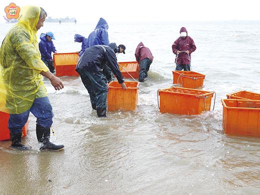 水試所昨在建功嶼放流梭子蟹苗