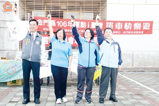 金門縣金城體育會辦理「106年金門縣運動i台灣單車快樂遊第1梯次活動」,一百五十位喜愛單車運動的民眾昨日早上在副縣長吳成典、金城體育會理事長唐麗輝議員鳴槍後騎著單車展開騎程,輕鬆悠遊在金門綠色隧道,沿途瀏覽美麗景色與生態、參訪各古蹟景點,享受一個健康愉快又環保的假日。 由教育部體育署指導,金門縣政府主辦,金門縣金城體育會承辦的「106年金門縣運動i台灣單車快樂遊第1梯次活動」昨日早上在縣立體育館後側廣場展開,七時起許多報名的車友陸續騎著愛車前往報到檢錄,7時30分起接續進行安全講習、暖身操。 開幕式由金城體育會理事長唐麗輝議員主持,副縣長吳成典、教育處科長王麗娟、縣選委會第一組組長兼副總幹事呂成發到場和一百五十位喜歡自行車運動的鄉親一起參與。 副縣長吳成典代表縣長陳福海向大家問好,他說,遊客來金門騎單車,在很多地方都已形成口碑,所以要把這項運動作得更好,因為金門太適合騎單車了,道路直又有小彎曲,有林蔭大道、也有林蔭小道,濱海道路風景美麗,非常有特色,縣府希望把路跑、海泳、自行車運動帶起來,這是金門非常重要的未來,希望鄉親扮演開路先鋒,不是只有廈門、福州、台灣朋友來騎腳踏車而已,金門也是有非常多喜歡自行車運動的鄉親,也希望建構自行車旅遊的一個友善騎乘環境,結合漫遊金門觀光活動,讓金門更好。 吳副縣長也希望大家幫忙金門K-BIKE,大家口耳相傳,一起把這項運動帶起來,這也是對於鄉土的回饋,會形成金門很好發展機會,營造很好的發展環境,與事業出來,希望大家共同努力。 他也希望大家出放鬆心情騎著腳踏,快樂出門、平安回來,享受一趟愉快的單車之旅。 唐麗輝理事長指出,看到參與車友年齡層更年輕,令人感到欣喜,金城體育會自創建以來,每一年都舉辦腳踏車活動,不敢說是腳踏車的先行者,至少在這一區塊盡了最大的努力,也感謝伙伴風火輪車隊,每一年都來支持活動,帶領大家完成單車旅遊。 她也提醒年輕小伙子活動中騎單車不要追快,並叮嚀帶著小朋友一起參加的家長,要約束、注意孩子的安全,大家以休閒的方式來參與這次活動,沿途欣賞金門的美景,快快樂樂、平平安安,共度一個愉快的假日。 昨日參加人員分成十小隊,約在八時許在吳成典副縣長、唐麗輝理事長等人共同鳴槍後出發,展開四十幾公里的騎程。 車隊在金門縣單車安全運動協會、風火輪單車協會的會員領騎與路口交通指揮下,由縣立體育館後側廣場出發,經福建省政府到濱海外環自行車道再到慈湖三角堡,途經南山林道途經北山外環自行車再到北山播音牆,停留古寧頭戰史館休息,到嚨口自行車道再到后沙經瓊林圓環直接走雙瓊路,經一門三節牌坊到伯玉路穿過中山紀念林到桃園路,經酒廠回到體育館後廣場,主辦單位也頒發騎乘證明、餐盒及一份小禮物給每位參與的車友。 昨日活動騎乘的路線,主要以海岸線、生態環境及戰地遺跡為主,參加的民眾在綠色隧道騎著自行車,迎著微風,漫遊在海濱山林與古蹟景點之間,不但能環保又可認識古蹟,沿途欣賞美麗風光,藉由單車巡禮了解地區自然保育的重要及文化遺跡的優美,共度一個兼具知性與輕鬆休閒健康又環保的假日。