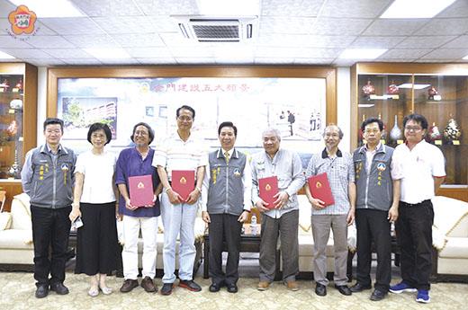 陳福海縣長上任以來,一直希望催生的金門縣立美術館,終於跨出一大步。金門縣文化局昨天召開金門縣美術館籌備小組第一次會議,並推舉旅台鄉親李錫敏擔任美術館籌備處主任。昨日下午籌備小組多位委員並拜會縣長陳福海,由陳縣長親自發給聘書,象徵美術館正式踏出第一步。 縣長陳福海希望未來的美術館,格局不要限金門,應是朝和國際接軌方向來規劃。陳縣長強調,金門就是一個大的美術館,美術館籌備小組能透過集思廣益和審視,就能讓除了經典美術館籌建成立,其它如典藏、捐贈館或展覽場域,也能由點到線而面。 美術館籌備小組一行,包括李錫敏、陳瓦木、翁清土、王士朝等人,昨日下午四時二十分在金門縣文化局長呂坤和、副局長黃雅芬、課長周祥敏、文化園區管理所所長盧根陣等人陪同,拜會了縣長陳福海,就美術館籌建交換意見。 縣長陳福海強調,美術館籌建是金門大事,格局不限金門。他也以前行政院長郝柏村有意將抗戰七十週年油畫作品留在金門典藏,現作品還在國防部地下室,並打算過一段時間移至昇恆昌三樓展覽;因此,這批畫作就有待美術館籌備小組委員集思廣益,思考未來如何典藏陳展。而小三通旅運大樓未來也將有活動藝術長廊空間,委員都可給寶貴建言。 陳縣長也以除了美術館籌建外,委員也能對金門公部門建築案,在美感多審視,提供建議。並請文化局就現在留存在金門知名大師畫作、陶瓷等作品,能找本人作說故事和口述歷史,來增添金門歷史和觀光賣點。 金門縣文化局聘請包括李錫奇、王水衷、李台山、楊永斌、翁清土、王士朝、李錫敏、陳瓦木、莊尚為、蔡顯國等人擔任美術館籌備小組委員(未來還會再增加),昨天上午召開第一次籌備會議,不過老天不作美,霧鎖金門,所以楊永斌等幾位在台委員受困機場,無法趕回來與會。 金門縣文化局長呂坤和表示,成立金門縣美術館是他局長任內的一大任務和使命,原本規劃要設在行政園區(乳南營區)內,但因受到各方的壓力,所以暫時擱置,今年也沒有編列預算,但是推動的腳步不能停,所以才先成立籌備小組,希望透過籌備委員專家學者的推動,讓美術館能踏出第一步。 委員王士朝提出臨時動議,由於十位籌備委員共有六位出席,已達法定的過半數,他提議由李錫敏出任籌備處主任,獲得在場委員鼓掌通過(而籌備處將設在文化園區管理所展開運作)。 接著就由李錫敏主持會議,他說成立美術館已經說了幾十年,都是只聞樓梯響,現在總算有了起步,他希望未來美術館的內外在都能兼容並蓄,外在的硬體建設一定要有亮點,內在的典藏也要有代表金門的東西,希望委員能集思廣益,發揮交流互動,大家為家鄉盡一份心力。 陳瓦木委員說,美術館的成立地點很重要,所以選址是最重要的,過去文化局曾委託作成一份調查研究,曾提出包括烏沙頭、文化園區、莒光國小、金門酒廠金寧廠對面空地等六處地點,加上後來提出的乳南營區,總共有七處,應先檢討這七處何者最適合;經討論咸認為以莒光國小前的水試所及乳南營區最符眾望。陳瓦木也邀請大家去參觀彰化的美術館等設施,他山之石可以攻錯。 翁清土委員則表示,地點若選錯,將來會變成蚊子館,所以選址真的很重要,他也建議將來美術館一定要建成一座地標性建築,能和莒光樓這樣的地標來凸顯金門;另外,在籌備和建築的四、五年期間,也要編列預算開始典藏,不能等到開館才來,而開館時希望能舉辦全國美術獎向全國徵件,舉辦兩岸三地的邀請美展,一舉讓金門美術館一砲而紅。 王士朝和蔡顯國委員也都贊同地標性建築的看法,認為美術館一定要有國際性的視野,不能閉門造車。 昨天也討論「金門縣美術館籌備處設置要點」草案,籌備處設置主任一人,由縣長指派,承縣長之命綜理籌備處各項業務,置秘書一人;組員四名,辦理相關業務;籌備處於金門縣美術館成立時裁撤之。