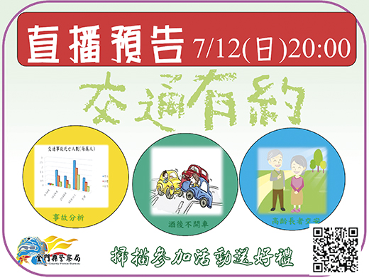有鑑於近年來台灣地區高齡長者交通事故頻傳,加上109年度青少年暑假期間即將到來,縣警局為有效傳遞交通常識及預防之道,降低本縣交通事故發生,增進民眾對交通安全之重視,預將於本(7)月12日(星期日)晚上8時,在該局「KPB直播室」辦理「交安、浯安、雄平安」臉書直播活動,希望藉由網路直播創意交通宣導活動,營造交通安全宣導情境氛圍,縣警局歡迎民眾在當天一起共襄盛舉為「金警」加油,還有機會獲得獎品哦! 縣警局指出,本次FB直播「交通安全」宣導活動,探討主軸議題包括今年交通部及警政署交安宣導重點「關懷高齡長者交安三部曲」、「喝酒開車!金『駕』毋湯」、「交通事故不容out,向民眾(鄉親)報告」……等等,除了由本縣道安主播張碧汝小姐主持外,因本(109)年初小徑圓環(伯玉路)曾發生A1(夜間行人)交通事故,屆時現場也將特別邀請長期觀察高齡長者交安議題甚篤的小徑社區發展協會理事長楊廷標(金門縣港務處前處長)現身說法,希望採「以案論案」剖析方式,聆聽「高齡長者行的安全」心聲及見解。 另外,夏天正值荔枝產季,走進水果攤一探,架子上一顆顆鮮豔欲滴的荔枝總是帶給人們在視覺與味覺上的強烈攻擊。有人說荔枝吃多了會「上火」,但你知道除了「上火」之外,荔枝還可能導致開車族無法通過道路酒駕測試嗎?交通隊也會針對網路部分網友好奇詢問「奶雞(荔枝)有無酒精濃度殘值?」的說法,詳細的做測試實驗,破除傳言以外,也藉機宣導民眾「開車不喝酒,喝酒不開車」。 縣警局交通隊希望大家告訴大家,在本(7)月12日晚間8時起,一起共襄盛舉為「金警」加油。直播當日現場為了與粉絲互動熱絡,也特別準備多份神秘小禮物贈送參與民眾,希望民眾或粉絲屆時能夠上網呼應搶答,以達到寓教於樂、交通安全宣導的最佳效果。所以,如果還沒有加入金門縣警察局粉絲的民眾們!請馬上用手機掃上圖的QR Code,就可以加入共同參與哦! 縣警局長張國雄表示,強化交通安全宣導,現代化警察不能一成不變,要與時俱進跟潮流接軌,唯有跳脫過去傳統的宣導窠臼思維,利用創新靈活方式,才能進一步提升道路交通安全防制的深度及廣度,帶給民眾耳目一新感受。所以在今年初他即召集相關單位戮力研究討論、搜尋各種資訊,已建置完成「KPB直播室」,近期也將採「每週開播」方式,蒐羅各種最新犯罪手法、交通新修法令、警察為民服務事蹟、……等內容,來跟鄉親報告及互動,期能為民眾所接受及熱烈迴響,發揮最佳宣導效果。