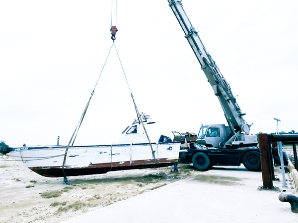 海洋委員會海巡署金馬澎分署第九(金門)岸巡隊水頭安檢所於7月9日上午6時許安檢勤務人員於港區巡邏時,行經後豐東堤碼頭察覺港區停泊的「軒○號」漁船船身呈傾斜半沉情形,經查看當時沉船內無船員且無燃油外洩,隨即通知「軒」船船主處置。 第九岸巡隊水頭安檢所於7月9日上午6時10分安檢勤務人員於港區巡邏時,行經後豐東堤碼頭察覺港區停泊的「軒○號」漁船船身呈傾斜半沉情形,經查看當時沉船內無船員,立即通知「軒」船船主李先生處置,並由安檢所同仁從旁實施安全戒護工作。船主於6時23分抵達現場,研判應是港區湧浪因素,導致船身呈傾斜半沉情形,後續聯繫大型吊掛機具業者實施船體吊掛作業,並於8時46分將「軒」船吊掛置放於岸上,再一次成功守護漁民朋友賴以為生的生財工具。 海巡署表示,依據中央氣象局海象資訊,近期金門地區海上陣風可達8級,提醒漁民朋友加強確認自身漁船之繫纜固定,並檢查船用自動抽(排)水機具妥善情形,以避免類案再生;另民眾如於岸際或海上發現危難需要救助時,可撥打海巡署「118」服務專線,海巡署將竭誠為您服務。