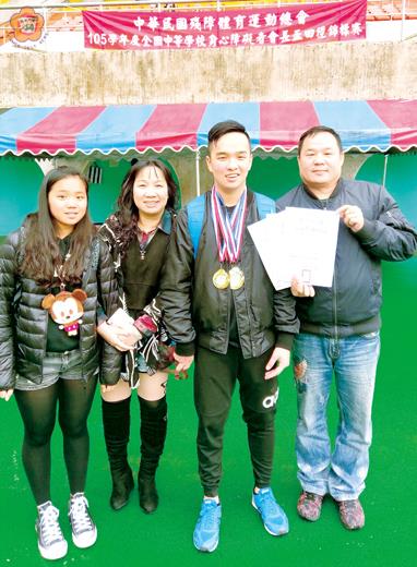 金門高中林泊霆3月25日參加105學年度全國中等學校身心障礙者會長盃田徑錦標賽,首次參賽即在全國高男肢體障礙組100公尺、200公尺、400公尺三項勇奪金牌。他是金門高中首位參加身心障礙運動會的選手,也締造「三冠王」佳績。金門高中表示,林泊霆將鎖定明年五月的身障生全運會暨國手選拔測驗賽,期待能成為國手,為縣也為國爭光。 金門高中學生林泊霆,自幼因中度小兒麻痹之故,右半邊肌肉嚴重萎縮,以致他很多動作的控制及軀幹的平衡跟不上一般的同學,且有些訓練需要以一對一進行。而他自己堅持及教練的指導和全家人的加油下,首次挑戰「105學年度全國中等學校身心障礙者會長盃田徑錦標賽」,並勇奪3金佳績,相當難能可貴。 為此,金門高中田徑隊教練林偉倫指出,身心障礙運動會不同於一般運動會,欲參加身障生運動會的選手需要經過專業醫師的體位檢定(依據障礙類別區分為肢障、視障、聽障、腦麻、自閉症、智障等六類,並依照嚴重程度區分為三到四級),且嚴格區分參賽者之身心狀況以求比賽之公正性。且對於這類運動員而言能夠參賽甚至完賽都是值得鼓勵的事,尤其光是訓練過程對於教練、選手而言就是一項極大的挑戰。林泊霆在第二十屆縣運會後仍持續積極練習,在此次大賽中殺出重圍,跑出連自己都想不到的三面金牌。 林偉倫也指出,根據教育部的規定在身障生中等學校運動會中獲得前三名者就能取得運動績優甄試入學的資格。換言之,林泊霆透過運動校隊參與替自己的未來開了一扇大門,能有更多選擇進入優質名校,學術兼顧,璀璨未來。 對於首次參賽即勇奪3金,林泊霆在賽後開心表示,自幼因中度小兒麻痹之故,右半邊肌肉嚴重萎縮,在很多動作的控制及軀幹的平衡跟不上一般的同學。有些訓練都得一對一陪伴才有辦法進行,感謝教練、隊員們給予最大的協助,讓他能在安全無虞的環境裡逐步向前,同時也要感謝家人無條件的陪伴,尤其在此次比賽全家總動員到臺北觀賽,也因為他們的加油聲,讓我在關鍵時刻能堅持並且更有力氣邁出步伐,也在親人的見證下完賽並奪得金牌,讓我倍感驕傲。 林泊霆也形容,此次囊括三金讓我更有勇氣挑戰未來人生諸多難題,接下來會繼續接受更嚴苛的訓練,並把目標放在今年下半年度的國手選拔以及明年五月的身心障礙者全運會,希望有機會能達標成為國手代表國家出賽,也在高中畢業前打破T37級100公尺、200公尺、400公尺的全國紀錄,讓自己的故事能夠繼續書寫,成就自己的同時也能激勵更多跟他一樣的人,不向命運低頭,勇往直前。