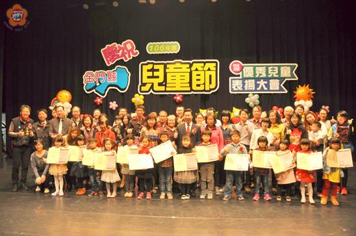 兒童節前夕,金門縣政府昨日上午在金門縣文化局演藝廳舉辦106年優秀兒童表揚。縣長陳福海在逐一頒獎六十三位全縣優秀兒童同時,也強調對於金門教育投資絕不吝嗇,未來將挹注更多資源投入教育,並期許在各校校長、主任和教師及家長共同關注,更帶動金門教育的往上提昇。 兒童節表揚大會昨日上午十時起,在文化局演藝廳舉行。縣長辦公室主任陳金文、教育處長李文良、科長許能麗,以及金城鎮長石兆瑉、金沙鎮代理鎮長楊志斌和國中小校長及中正國小師生代表參加。並有不少受獎兒童家長出席與會,分享榮耀。 在穿插多年國小獨輪車等節目表演中,縣長陳福海並逐一頒發獎狀及獎品予六十三位全縣優秀兒童。另外,兒童節金門兒童繪畫比賽得獎者,也獲陳縣長頒獎鼓勵。 縣長陳福海強調,投資興建金湖、金沙和金城鎮鎮民綜合服務大樓,就是要讓老少婦幼和青少年等,都能享受親子教育館和藝文等活動空間。他表示,這陣子走訪許多學校看到學子活潑和充滿活力,除了感謝學校校長、主任、組長及教師教學用心,以及家長對教育的關注,並期學校能參考引進台北親職教育思維,更感謝議會對金門教育的支持。 陳縣長也對於中正國小有室內游泳池,建議金湖國小和寧中小等學生數多的學校,能比照規劃,讓學生也能學習游泳技能。對於兒童節表揚大會舉辦,縣長陳福海也建議教育處,未來可像表揚百歲人瑞、金鑽婚或青年節表揚優秀青年等,選擇在星期六、日舉辦,讓家屬及親朋好友可以參加,分享喜悅和榮耀。 對於像中正國小和金城幼兒園等學生數多學校,缺餐廳、活動空間不夠,希望教育處就週邊土地等只要可挑戰突破,將環境做大,都可和學校、社區和家長一起來討論。 陳縣長也以今年兒童節,縣府送給學生兒童節禮物是小雞撲滿,就是希望鼓勵小朋友從小養成儲蓄習慣,和懂得感恩、惜福和回饋。他也期許每位學童,從小好好把握時間用功讀書,並能立定志向追求目標,將來也能成為未來的金門縣長,大家一起為這塊土地做更多的事。 今年度全縣優秀兒童得獎名單如下: 幼兒園組:金城幼兒園周思羽、葉宥彤、陳秉嘉、莊依潔、王貝丞、楊心妍;賢庵國小蔡和祐;賢庵國小垵湖分校薛宜君;古城國小邵靖恩;金湖國小李采蓁、鄭羽涵、顏妤蓁、陳毓欣;開瑄國小蔡宥樂;正義國小陳羽婕;柏村國小楊佳恩;多年國小鄭偉龍;金沙國小李沛婕、彭家禾;何浦國小錢泓元;安瀾國小李東翰;述美國小楊沅澔;金寧中小學吳子靚;金鼎國小許書愷;古寧國小李紫綺;湖埔國小楊逸菲;卓環國小林心瑜;西口國小莊馥寧;上岐國小洪苡恩;金門縣私立雅韻藝術學苑幼兒園洪均俞;肯利熊優質幼兒園陳品瑄。 國小組:中正國小陳泓佑、何詩榆、吳孟甄、徐子昕、黃雨涵、謝旻羲、周嘉妤、劉燕瑩;賢庵國小林以晨、盧建邦;垵湖分校吳樺楦;古城國小陳昇圓;金湖國小陳羽、林子芸、紀有容;開瑄國小孫敦勤;正義國小陳靖玟;柏村國小呂丞翰;多年國小吳芸婷;金沙國小黃家瑩、王凡之;何浦國小周怡秀、陳宇謙;安瀾國小李宜雯;述美國小楊于葶;金寧中小學許華峻;金鼎國小翁晨渝;古寧國小李睿翎;湖埔國小楊承叡;卓環國小洪振翔;西口國小洪瑜均;上岐國小方宜凡。 縣府教育處指出,今年兒童節,全縣有國小32位,幼兒園31位學童,總計63位優秀兒童接受表揚,每位優秀兒童都是品德優良,且學習領域成績評量均在「甲」等以上,全學期皆未遲到早退,尊師敬長,律己助人,普受同學好評者。縣府希望藉由這次的表揚活動肯定學生的表現,也希望藉此能鼓勵學童奮發向上,作為其他同學的楷模。
