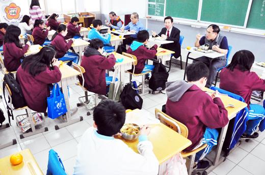 金門縣長陳福海昨天訪視金城國中,並在教育處長李文良、校長許維民等人陪同巡視校園和週邊環境,了解校園整體規劃發展概況。中午,陳縣長與城中學生共進營養午餐,希望吃出衛生、安全和健康外,並喊出「翻轉教育二十年」,從制度面來做起,打造出具有宏觀的教育,培育出優秀的下一代,讓金門教育成為兩岸的典範! 繼走訪全縣學校規模最大、學童數最多的中正國小之後,陳縣長學校訪視之旅昨天來到金城國中,由縣府秘書陳金文、教育處長李文良、城中校長許維民等人陪同,陳縣長首先視察台商子女學生宿舍,他認為城中辦理台商子女教育,是一項指標性的教育工作。之後,他又訪視體育館、花房及週邊環境,希望能做一整體規劃,讓空間充分利用和增進教育資源。 在校園訪視時,城中學生看到陳縣長都問說縣長好!貴賓好!陳縣長與學生共進午餐時,他希望學生吃得營養、衛生和健康外,他也告訴學生說希望建構好的教育設施和環境,使學生有好的學習環境和品質。 之後,陳縣長在聽取校長許維民的城中校務報告、校園整體規劃、風災後復建情形後,他說城中是全縣各所國中學生最多的學校,約九百八十六人、教職員工一百四十餘人,並具有深厚的發展潛力,未來投資的校園整體規劃發展要有感動,翻轉二十年的教育施政願景。 陳縣長也表示,未來若金城國中體育館重新改建工程,除了思考學校教學空間之外,也要幫城區找如國樂團的練習、展演的藝文空間,透過整體規劃,並把預算放進來,以及考量在地環境和需求? 目前,縣府成立政策小組,對於各項重大發展建設規劃方案,透過傾聽和集思廣益,把政策定調下來後付諸施行! 陳縣長說城中校園環境規劃應有整體考量,並集中重點,讓學校有重點和指標性的發展計劃!同時,他強調對於教育預算決不會「窮教育」,到各校走動訪視之後,發現金門的希望是無窮的,小孩子也是很幸福。 陳縣長說碰到問題,要去面對它,用更多的方法去面對和解決,強調說發展金門的教育,不管幼兒、小學、國中……,他將花更多的時間及精神,並願意承擔、為金門的教育奠下十年、廿年的長遠良好的基礎。 對於有潛力的師生,陳縣長說都要出去走走,從外面看金門和做融合,對學習和教育都有好處;至於有潛力的學校,陳縣長表示用智慧、高度,打造出不同過去氛圍的新校園成為典範,讓兩岸或國際看了之後,是金門教育施政的驕傲! 陳縣長於上週利用赴台北拜訪行程時,他參觀了台北中山親子館,以作為未來金門規劃親子館的參考。陳縣長表示將在鄉鎮規劃興建活動中心,包括有親子、藝文、創作、婦女及智慧圖書館,以後在台灣看得到的,金門也可以擁有,週休假期帶孩子一起共學同樂。 針對各級學校校園植栽及綠美化維護一事,陳縣長請林務所出面幫忙,期讓校園更美麗,組編三個工班進駐校園協助植栽綠美化、修剪草坪,讓學校專心辦理教育和從事教學工作,並使校園景緻更加美麗! 此外,陳縣長期勉把學校當做是自己的「家」一樣看待,為這塊島的土地做一點事,並打造良好的學習環境,培育優秀下一代!