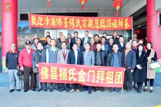 今年的清明節將屆!來自大陸漳浦佛曇楊氏宗親近七十人,昨天小三通跨海來到金門,受到金門縣董楊宗親會理事長楊誠璽和官澳、湖下、湖美宗親,並高舉歡迎紅布條的熱忱迎接,且相見歡,洋溢著濃濃的宗親情誼!今天上午,漳浦佛曇楊氏宗親一行,將參與在金沙鎮官澳舉行的清明節掃墓祭祖活動,慎終追遠和敦睦宗誼,以及謀宗族間之團結及發揚祖德精神。 於今年一月初,金門縣官澳楊氏宗親會由理長楊維生、榮譽理事長楊維居率領到大陸廈門湖里、漳州、東山島及漳浦等地拜會當地楊氏宗親,並進行宗親交流與聯誼活動。 另,在日前的金門董楊宗親會理監事聯席會議,決議於今(二)日舉行清明掃墓祭祖,並將在九日辦理董楊宗親會聯合掃墓祭祖活動。 大陸漳浦佛曇楊氏宗親一行,是於昨天上午十一時,從廈門五通碼頭搭乘小三通客船,歷經半小時左右的海上航程,順利平安的抵達金門水頭碼頭,一踏出入境大廳,即受到金門縣董楊宗親會理事長楊誠璽和官澳楊氏宗親會理事長楊維生、縣議員楊永立與湖下、湖美楊氏宗親的迎迓,並高舉著寫有「歡迎漳浦佛曇楊氏宗親蒞臨祖掃墓」紅布條的歡迎,隔海兩地宗親相見,流露出濃濃的宗誼,十分的溫馨。 官澳楊氏宗親會表示,有鑑於官澳楊氏開基祖亮節公祖墳已於去年整修峻工,規劃於今天辦理清明節掃墓祭祖活動,並且邀請來自大陸的漳浦佛曇楊氏宗親六十餘人,以及金寧鄉的湖峰、湖美、榜林宗親參加。另,上個月中旬,來自廈門湖里楊氏宗親會七十餘位,在理事長楊永成率到官澳楊氏大宗祠、湖峰及湖美家廟謁祖及聯誼,緬懷祖德,發揚承先啟後的精神。 在漳浦縣佛曇鎮有一座與金門縣金沙鎮官澳村楊氏祖廟的廟形式神似,祖龕牌位,一世祖均是亮節,二世祖均是世昌(佛細)、世耀(佛成)、世隆(佛潭)。七百多年來一脈相承,兩地楊氏同宗同祖,常來常往,宗誼篤厚。 今天上午十時,漳浦佛曇楊氏宗親一行,將參與在金沙鎮官澳舉行的清明節掃墓祭祖活動,表達慎終追遠、敦睦宗誼及發揚祖德精神。 據表示,古建築佛曇楊氏祖廟于1985年被列為縣級文物保護單位,不時有台澎金馬及東南亞的宗親前來祭拜。官澳的楊氏祖廟也常有大陸宗親前往謁祖,清末修建,當時資金僅夠建後堂,佛曇宗親知道後發動募捐,續建了前堂。2001年底佛曇宗親曾組織三十多人前往金門拜祖。官澳楊氏從始祖亮節公起,派系蕃衍,迄今共有三十世。目前後裔八千餘人,宗祠與家廟八座;台灣及東南亞有其後裔十多萬人,與佛曇的宗親歷來往來頻繁,清末重修祖廟的碑文上記載︰「自明迄清,凡有修廟,皆佛曇之來倡首……」,佛曇楊氏宗親血濃于水,本來就是一家人! 此外,大陸漳浦佛曇楊氏宗親一行人,除今天參加官澳清明節掃墓祭祖活動之後,明天也將赴各地參訪和交流,增進佛曇與金門楊氏宗親情誼,預定下午搭乘小三通客船返回廈門,結束來金三天兩夜的訪程,劃下圓滿句點!