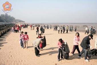 金門國家公園管理處昨日結合古寧頭社區發展協會舉辦軍民淨灘活動,金管處處長黃文卿希望藉由淨灘活動,來喚起民眾重視維護大自然的環境,激發個人的公德心,不任意丟垃圾、廢棄物,共同來維護金門青山綠水的自然資源。淨灘過程中也意外發現十多顆裸露地雷,聯勤金門地區支援指揮部立即出動未爆彈處理小組到場移除,軍民把垃圾和地雷一起清除淨灘。 這項淨灘活動,昨日上午九時在古寧頭戰場北山出海口展開,包括金管處長黃文卿、金寧鄉長李文俊、古寧頭社區發展協會理事長李正騰、聯勤金門地區支援指揮部指揮官朱漢權少將等帶領金管處員工、鄉公所員工、清潔工、環保志工以及聯勤金門地支部官兵,結合古寧頭社區居民和古寧國小師生四百多人,共聚在海堤廣場淨灘,以實際行動來為海域「妝扮」。 黃文卿指出,古寧頭北山紅土斷崖為古寧頭戰役的遺址紀念地,一九四九年十月二十五日中共軍隊約一萬人登陸金門古寧頭,爆發古寧頭大戰,國共兩軍血戰三晝夜,最後共軍一千多人在北山斷崖被俘,結束戰役。她說,北山紅土斷崖,也是地區重要的軍事遺跡,其地質為紅土礫石、白土及地表土所共構而成,其崖下之貓公石景觀為其因紅土掉落後遭海水侵蝕及氧化而膠結形成之特殊地質景觀,出海口外一大片淺灘海域,為古寧頭村民靠海為生的石蚵海田,近幾年來更被列為鱟的保育區,為深具觀光發展潛力的景點,金管處也計劃加以規劃成為觀光景點。 黃文卿表示,金門擁有豐富的自然景觀資源,美麗的海域景色也是一大特色,只是這幾年來,隨著海域管制禁令解除,人工垃圾也伴隨而來,加上距離中國大陸相當近,海岸毗連大陸,經常會因風向的關係而有大陸垃圾漂流來,破壞美麗海域的面貌,舉辦這項淨灘活動,是一個行動的宣示,就是希望來喚起社會大眾對海岸維護的重視,激發個人的公德心,不任意丟垃圾、廢棄物,共同來維護大自然的環境,才能永保金門獨特的青山綠水的自然資源。 隨後,大夥沿著海岸線認真、賣力撿拾沙灘上的保麗龍、竹子、木板、瓶瓶罐罐,以及各式廢棄的垃圾,清除中國海漂過來的垃圾。當淨灘人員從北山出海口往紅土斷崖海灘推進,不意眼尖民眾發現散布十多顆地雷,帶領官兵淨灘的聯勤金門地支部指揮官朱漢權少將,立即下令所屬未爆彈處理小組趕到現場,依標準作業程序將地雷置入防爆毯、防爆桶帶回銷燬。 朱漢權說,這批地雷為M3人員殺傷雷,年代久遠,彈體已經嚴重鏽蝕,但威力仍不能忽視。 古寧頭社區發展協會理事長李正騰感謝大夥犧牲時間來參與活動,也期望透由淨灘活動,讓這一處蚵田景觀減少人為的破壞,有好的生態景觀,才能養殖好的石頭蚵。 李正騰也帶領社區居民在海堤廣場烹飪各種口味的石頭蚵美食,讓參與淨灘活動品嚐,更希望大家協助宣傳古寧頭之寶的石頭蚵美味。