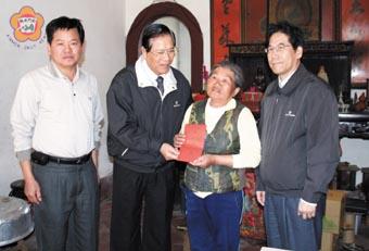 春節腳步近了,有些家庭正忙著打掃環境,準備歡喜迎新年,有的家庭正面臨困境,愁著年節開銷哪裡來?福建省政府主席顏忠誠昨日就偕同秘書長翁明志等人走訪烈嶼鄉、金城鎮、金寧鄉探慰貧困家戶,致贈年節慰問金,提前向他們賀年,表達一份濃濃的關懷之情。 年節將至,小孩子歡喜要過年,添新衣,但對於許多貧苦家庭而言,過年似乎更增加大人們的負擔,有的家庭因為家遭巨變陷入愁雲慘霧中。一向疾民所苦,憂民所痛的福建省政府主席顏忠誠昨日上午在秘書長翁明志、第一組組長楊誠璽、組員翁素英、陳國興陪同下,展開春節前夕的關懷與探慰貧苦家庭的行程。 顏主席等人昨日早上首先跨海赴烈嶼鄉,並在鄉長林金量及公所人員的陪同下,顏主席前往探慰西口村、林湖村、上林村等貧困家戶,致贈年節慰問金,該受慰家戶有的是兒子意外溺斃、孫子車禍死亡……等,親人的遽逝加上生活的無情打擊,讓人情何以堪! 顏主席也相當同情他們的不幸遭遇,表情也顯得相當凝重,他頻頻勸慰家屬要注意自己的健康,看開一點,勇敢生活下去。 而生活清苦的烈嶼鄉黃埔村黃×齡赴台,顏主席也交代鄉公所將慰問金轉達,表達關懷之情。 在結束烈嶼鄉的探慰行程後,顏主席一行也搭船返回大金門,並在金城鎮長蔡輝詩、課長蔡木川等人陪同,探慰金城鎮急難戶,關懷他們的生活現況,鼓勵他們堅強面對人生,並致送慰問金,提前向他們賀年。 看到顏主席等人到家探訪,多位老人有的是女兒因車禍死亡、有的是夫歿子精神障礙無法工作、有的是夫臥病床一家生活貧苦,思及自身不幸遭遇,不禁黯然神傷,對於顏主席親自到訪慰問,心中激動非常,像有一家來金工作定居十幾年,首次顏主席到府慰問,感激之情溢於言表。 造化弄人,對於鄉親的疾苦,顏主席深表同情,也致贈紅包(慰問金),希望能在新的一年能為他們帶來好運氣,逐漸擺脫生活的厄運。在親切地關懷聲中,顏主席也叮嚀他們天冷要多添衣服保暖,注意身體健康,讓受慰者相當窩心。 顏主席昨日上午也走訪金寧鄉探慰鄉民,關懷她們的生活景況,在年前捎上一份省府的祝福與濃濃的關懷之情。