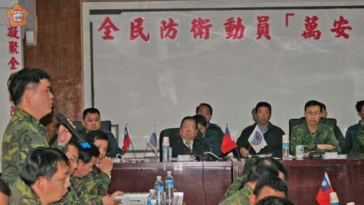 九十六年度全民防衛動員「萬安三十號」演習金門地區兵棋推演昨假金門防衛指揮部舉行,活動由陸軍司令部副司令武劍剛中將主持,縣府副縣長楊忠全、以及縣府相關局室主管、海、岸巡民營事業等代表也出席參加,藉由活動強化軍民合同,讓各單位能相互瞭解有效配合,落實全民防衛。 九十六年度全民防衛動員萬安三十號演習重點包括國土安全防護及全民防空演習等方面,共區分「兵棋推演」、「綜合實作」及「防空疏散」三階段實施,第一階段兵棋推演區分第三、四、五作戰區,以及金門、馬祖、花東及澎湖防衛部等七場次進行,首場次昨日假金門防衛指揮部率先展開,進行一連兩天的兵棋推演,以驗證全民防衛動員成效。 為期有效整合金門地區以及轄內各軍事單位,藉兵棋推演方式,以縣府動員、民方、緊急醫療、災害防救等事故應變機制為主體,結合地方特性,以強化機制統合、軍民合同、軍相容等之協同應變機能,加強各級單位間的配合、協調,堅實國防效能落實全民防衛。 金門地區「萬安三十號」演習兵棋推演昨日上午假金指部舉行,地點在金指部鑑潭山莊會議室,演習副統裁官為陸軍副司令武劍剛中將、國防部後備司司長謝雲龍中將等到場督考,兵棋推演是由金指部指揮官楊天嘯中將擔任召集人、副縣長楊忠全、防區三軍部隊長及戰力綜合協調會報、動員會報、災害防救會報成員等也出席參與。 金門萬安三十號演習兵推,課題區分經常戰備(動員整備)及國土防衛(動員實施)等兩個階段,主要研討重點包括:三合一會報任務與組織架構、海上空難事件救援處置、災害應變編組及任務運作、天然災害應變機制、地區物力動員需求與編管、徵購及徵用聯合徵集場開設作為與處置、民船支援離島滲透運補能量具體作為、民防人力支援軍事勤務、動員編管資訊系統建置等。 金指部指出,這次兵棋推演是以「軍民一體與平戰結合」及「民間應援、軍方備援」為主軸,以災害防救機制與處置作為為起點,摒除專題報告及學術研討作法,置重點於現有災害援助能量如何啟動應援機制和作法,以及能量不足的建議解決方案,而兵推過程全程以狀況誘導以及互動方式,透過溝通、協調獲致各級單位作業流程、能力、重點處置作法等並獲致結論,以建立完整、及時、有效的應變機制。 楊天嘯指出,全民防衛必須統合民間資源,並且統籌地區總體戰力,以俾利於災害發生之時藉由統籌有效發揮效能,及時提供各救災單位所需,用整體戰力,確保國家安全。 而為達全民國防,平時需統合民平時就必須保持政、軍之間協調機制,並精進人員、物力編管作為,確實掌握資源與能量,以利時能充實軍隊戰力,協力達成「有效嚇阻、防衛固守」的戰略構想。