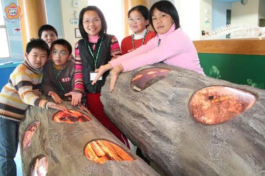 活樹、枯樹,都是許多昆蟲的大飯店! 在金門國家公園實習的小小解說員,藉由枯樹模型,告訴遊客,樹是許多生物的家;即使是枯木,也常常是許多昆蟲賴以維生的地方! 樹不但會聚集鳥類、松鼠等動物,也會聚集許多昆蟲,包括:鍬形蟲、天牛、吉丁蟲、黑艷蟲、擬步行蟲、蜂。會在枯木中越冬的昆蟲則有:蜂、白蟻、螞蟻的幼蟲、鍬形蟲的幼蟲、吉丁蟲的幼蟲、叩頭蟲的幼蟲、天牛的幼蟲等。 參加小小解說員培訓的國小學生們,在服勤實習期間,不斷吸收知識,並追求成長。金湖國小五年級的陳劭豐,已經服務了二百多名遊客。這幾天,他多認識了布氏鯨的隆脊和長吻真海豚的骨盆骨,他覺得很有收穫。 柏村國小呂祐慈是自願參加受訓的,她希望提昇自然方面的知識。在培訓課程中,她知道了鯨有鬚鯨與齒鯨之分。(鬚鯨吃東西是用過濾的,齒鯨可以咬住獵物再吞食。) 卓環國小五年級的洪薏翔在課程中,學到如何根據鳥類的腳或嘴,分辨牠們所生存的環境。卓環國小五年級的羅傑耀認識了鸕鶿的一些生態行為。 中正國小五年級陳儀的父親是很專業的業餘解說員,陳儀對動植物的生態頗為熟悉,有人叫他超級的小小解說員。 開瑄國小六年級的林孟萱雖然自認很害羞,但還是勇敢參加訓練。她覺得人們應該多認識自然,並尊重各種生命,不要讓它們消失了。
