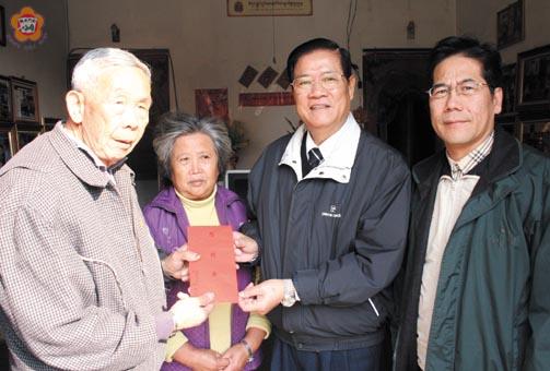 金沙鎮塘頭民眾楊昭穆,半個月內家中遭逢三起意外,長子也不幸在車禍中喪生,全家牽掛三個失怙的孫子,也擔心長媳一人無法支撐繁重的家計和子女教養問題,省主席顏忠誠昨特別關心,致贈一萬元慰問金救急需,也希望他們多多保重身體,堅強走出哀傷,好好照顧三位孫子。 家住金沙鎮塘頭的楊昭穆,去年底到今年初半個月內家中遭逢三起意外,媽媽不慎跌倒受傷、長子在台中發生車禍不治。全家人陷入哀傷中,現在擔心的是媳婦以及三個失怙的孫子未來的生活。 楊昭穆說,兒子空軍退役後在航空公司擔任飛機維修人員,九十五年十二月三十一日,騎車外出為了閃避來車,不慎撞上了停靠路邊的車子,送醫後不治,令他們最為遺憾以及難過。 楊昭穆說,突然發生這種事,媳婦一肩扛起家中重擔,長孫念高中一學期的學費就要五萬多元,另兩位小孫子也還在念書中,加上房貸,所有重責都落在她一個人身上,很擔心她以及三個孫子未來的生活以及教育問題。 楊昭穆也說,有和媳婦溝通,帶孫子回金門就學,基本生活上的支出會比較少,但是突然發生意外,也得等所有事情處理適宜才有辦法,不過,媳婦擔心回來金門找不到工作,會讓生活更陷困境。 福建省政府主席顏忠誠昨在秘書長翁明志,第一組組長楊誠璽、組員翁素芬、陳國興等人的陪同下前往慰問,了解目前情形,並致贈一萬元慰問金,希望能協助楊家,度過緊急需求。 顏忠誠也一一和楊昭穆以及楊昭穆的家人致意,要他們保重身體,走出低沈的情緒,好好的照顧三個孫子和高齡九十二歲的媽媽。 楊昭穆也說,感謝各界的關心,屆時若媳婦帶著孫子回到金門來,如果可以的話,但願有關單位以及業者也能幫幫忙解決就業問題,有穩定的收入可養育孩子長大。