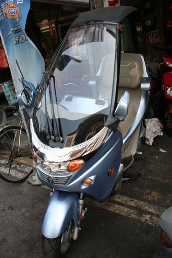 「好特別的機車啊」!經過它面前的人都會發出讚嘆聲。 流線的造型,還有遮風擋雨的敞篷,以及電視機、收音機等汽車級的設備,不僅特別、豪華,它還是相當「高貴」的機車,一台要價新台幣十五萬八千元。 一百五十西西、時速一百多公里,產自台中的這款昂貴機車,據說,大陸泉州還相當風行。 在民族路經營機車生意的老闆,特別進口一部,引來不少好奇的鄉親,成了該店最吸引人的招牌。