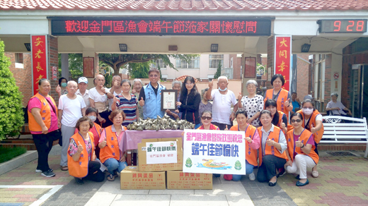 金門區漁會端午節慰問大同之家。金門區漁會由幹事陳詩玫領軍帶領家政班成員,走訪大同之家,致贈肉粽和甜粽乙批,祝賀長輩們端午節平安、健康、快樂! 大同之家主任楊志斌、安老組組長許乃生和長輩們感謝金門區漁會,於每年端午節前夕,親臨大同之家,祝賀長輩們健康快樂及致贈由家政班成員親手包的健康、美味的愛心粽及關懷長輩身體健康,與長輩們話家常,讓長輩們感受到社會的溫馨及祝福。 許多長輩表示,每年端午節都可以吃到金門區漁會家政班親手包的健康、美味的愛心粽,備感窩心和感謝。
