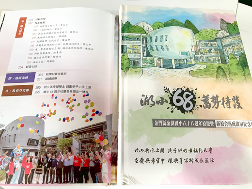 耗資近3億元興建的金湖國小新校舍去年11月正式啟用,校方最近推出一本「湖小68蓄勢待發│金門縣金湖國小68週年校慶暨新校舍落成啟用紀念專刊」,記錄新校舍從興建到落成啟用的點滴,同時也為迎接明年70週年校慶做為美好見證。 湖小校長陳為信介紹,紀念專刊全書分6大項目,每項命名都以代表金湖國小的「湖」字發想,包括:金湖容顏、湖光歲月、愛在湖曉、湖曉春風、湖曉薪傳和湖獅藝想。陳為信說,透過視覺藝術創作,可以讓偏鄉孩子長出一對夢想翅膀,飛離城鄉差距造成的狹隘視野,讓美感創意隨著夢想的翅膀起飛,也期待金湖國小走過69、70年,會有更亮麗表現。 陳為信自105年2月到校以來,陸續出版「阮厝佇金湖」繪本書,譜成「石獅爺的願望」閩南語歌謠,讓學童詮釋家鄉的人文風情。在老師楊玉蘭引導下,學生完成「湖獅藝想」畫冊。陳為信說,金湖國小按慣例每逢10年會出版一本專刊,去年新校舍完工後,適逢學校68週年慶,他結合兩者編印出新校舍落成啟用紀念專刊,最近出版,分贈老師和校友。 金湖國小在民國63年遷到現在的校區之後,大部分校舍建築物都已超過40年,因此,校方在103年完成校園整體規劃、105年動工、於108年8月完工,同年11月師生正式進駐使用。 陳為信表示,金湖國小新校舍興建總共耗資約2.7億元,共有5棟新校舍,意寓「五子登科」,並由師生親自命名,包括:行政大樓「感恩樓」、資訊教育教室「創新樓」、北側教學大樓「健康樓」、南側教學大樓「勤學樓」、圖書館「悅揚樓」。特別的是,這5棟大樓外觀卻沒有標駐這些命名,陳為信透露,原來是因為建築師認為「掛上名字」會破壞建築物的美感,所以名字都記在學校師生腦海中。 陳為信透露,最近教育處舉辦全金門的國民中小學校務評鑑,金湖國小是8所學校中最後訪視的學校,其中有委員說,「好在金湖國小是壓軸,讓校務評鑑有了美麗的收尾」,嶄新的校舍儼然成為社區地標,也是陳為信上任4年交出的漂亮成績單。