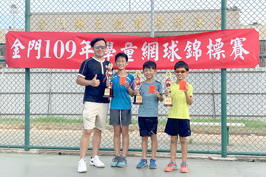 金門網球推廣協會辦理「金門縣一○九年學童網球錦標賽」,30位國小學童頂著太陽揮汗拚出勝負,最後分別由陳曄在低年級組、莊皓崴在中年級、陳彥禎在高年級分別摘下冠軍,在金門網球推廣協會理事長陳孝威頒獎表揚後,為球賽劃下圓滿句點。 為讓網球運動在地區向下扎根,使地區網球運動年齡層更多元,金門網球推廣協會日前於縣立網球場展開「金門縣一○九年學童網球錦標賽」,共有三十幾位國小學童在家長的陪同下參賽,進行球技切磋,也藉此驗證平日練習的成果。 球賽共分為小組預賽、八強單敗淘汰賽、小組賽三項,其中,小組預賽為打一盤四局NO-Ad制,局數四比四時採tie-breaker勝制,先得七分者為勝一盤。而八強單敗淘汰賽中,低年級組打一盤四局NO-Ad制,中高年級組打一盤六局NO-Ad制,雙方滿局數時,採tie-breaker勝制,先得七分者為勝。而小組賽的戰績判定,勝場數多者勝出,勝場相同以勝場(總勝局數)-(總負局數)大者為勝。 在經過一整天的循環比賽後,各組優勝出爐,閉幕中由陳孝威理事長主持並頒發獎盃獎勵績優選手,各組成績分別為: 低年級:第一名陳曄(開瑄國小)、第二名郭騰襄(中正國小)、第三名黃晨軒(中正國小)、李鑫(中正國小)。 中年級:第一名莊皓崴(中正國小)、第二名陳芓螢(中正國小)、第三名陳義善(金湖國小)、陳彥宇(中正國小)。 高年級:第一名陳彥禎(中正國小)、第二名楊敏晟(中正國小)、第三名李睿鑫(中正國小)。 陳孝威理事長說,該協會辦理競賽的目的希望能夠活化增加地區的網球交流,讓運動人口向下扎根。此次比賽,球員在一天的競爭中頂著大太陽揮汗打球,許多家長陪同孩子到場比賽也有點心疼,他們也希望縣府能夠將網球場規劃像金沙鎮複合式運動場一樣,讓孩子更喜愛運動。 另外,陳孝威也說,地區網球運動人口越來越多,但網球場數量不夠,許多民眾下班、學生放假要打網球都要排隊打球,希望政府能多設置一些網球場,讓接觸網球的孩子們,能夠有一個與他人切磋較勁的舞台。讓更多民眾接觸網球並且能夠喜愛上這項運動。