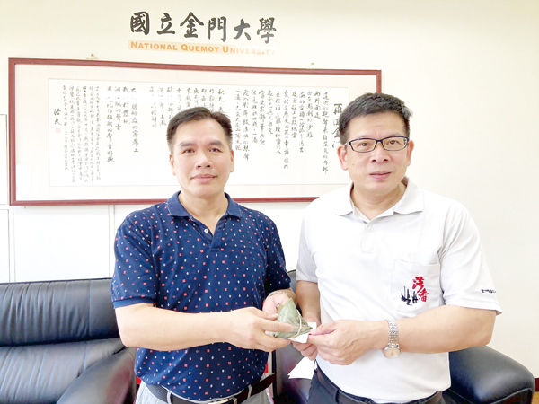 端午節前夕,國立金門大學教師會為感謝學校老師在新冠肺炎期間持續認真教學,並協助學生安心就學,特別舉辦謝師活動,以分享金門傳統粽、客家粽、南部粽等各種節令粽的方式,表達對老師辛勞的敬謝之意,並提前祝賀全體師生端午佳節愉快。 金大校長陳建民表示,端午這一天是感恩的日子,在今年疫情最艱困時刻,全校所有教職同仁仍堅守工作崗位,全力投入教學、關懷學生和支持各種防疫措施,他特別表達感謝之意。陳建民說,尤其是在四月份超前防疫的停課不停學期間,所有教師既要同步進行遠距教學,又要指導學生視訊學習,同時提醒學生注意各項生活規範和體溫回報,工作負擔上確實增加許多。陳建民也藉此對於教師們的辛勞與付出表達謝意。 金大教師會理事長吳一德表示,該校教師會成立十多年來,積極協助校務發展和維護教師基本權益,均獲得校內外人士的支持和協助。展望未來,教師會將持續協助老師扮演「傳道、授業、解惑」與協助校務發展。為持續保持防疫認知,活動過程也發送防疫口罩,祝福教師們端午節快樂又平安。