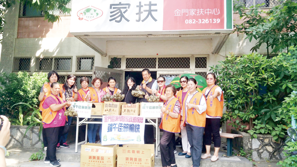 金門區漁會家政班端午節將粽中之重的愛心送給金門家扶中心扶助家庭。 金門區漁會家政班昨由幹事指導員陳詩玫代表許丕煌總幹事,率領家政班的媽媽成員十餘名,於昨日端午節的前夕,將家政班媽媽們親手包的各式粽子,肉粽、鹹粽、紫米粽等等共計736顆,贈送給金門家扶中心。同時也希望家扶中心的家庭,也可以在端午節時享受到漁會家政班媽媽們的愛心和手藝。 這份端午節粽中之重的端午節應景食品,由家扶中心主任李桂平代表家扶中心的受扶助家庭,接受此批有份量的端午節禮物,並於當日家扶中心發扶助金時,立即發送給受助家庭帶回享用。 家扶中心主任李桂平表示,今年已是金門區漁會家政班連續第六年捐贈粽子給家扶中心,前幾年曾收過於漁會家政班粽子的家扶家長們透露,不曉得是不是粽子裡面的內餡多了一份愛心和關心,顯得這些粽子透別的可口好吃。其實這些都是因為漁會家政班媽媽們,長年經驗累積的拿手功夫,李桂平也向媽媽們預約明年端午節的關懷,不要忘記家扶中心認真生活的家庭們。 金門區漁會幹事指導員陳詩玫指出,家政班媽媽們每年都會排開個人事務,聚集在一起包粽子、煮粽子,一邊開心聊天、一邊做愛心服務。家政班媽媽們將每一個綁好的粽子,快送到金門的弱勢群族手上,這樣雖忙但媽媽們卻覺得忙得很有意義,也希望藉由地區媽媽的小小貢獻,讓弱勢家庭的兒童們,可以體會到鄉親們的關懷。
