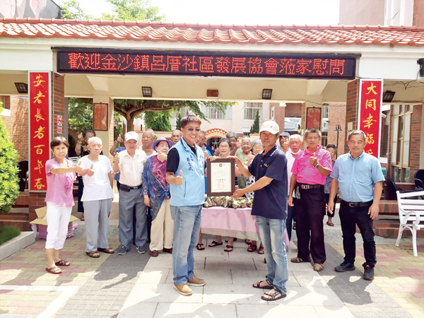 金沙鎮呂厝社區發展協會端午節慰問大同之家。粽葉飄香,溫馨送暖。金沙鎮呂厝社區發展協會理事長王富山領軍,前往大同之家致贈端午節應景肉粽及祝賀大同之家的長輩們平安、健康、勇壯、呷百二。 大同之家主任楊志斌及長輩們感謝呂厝社區發展協會理事長王富山及理監事們的愛心及關懷,嘉惠院內長輩及傳揚社區對於弱勢團體的善心與祝福。