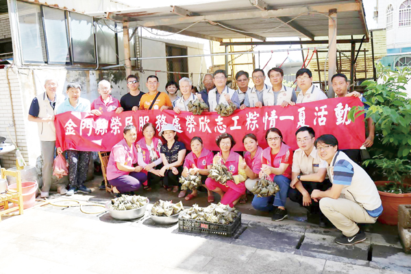 端午佳節,為關懷照顧地區榮民眷,金門縣榮民服務處所屬榮欣志工隊,主動發起「粽情一夏,慶端節」包粽活動,志工夥伴並將所完成的500顆粽子分享服務區榮民眷,提前陪伴長輩們歡度端午佳節,長輩們對志工的貼心關懷既感動又開心。 適逢端午佳節,金門縣榮服處為了關懷服務區內榮民眷生活,所屬榮欣志工隊特別發起「粽情一夏,慶端節」關懷長者活動,在金沙志工隊隊長黃秀英帶領下,志工們自發性相互聯繫所籌辦。活動當日志工們挽衣捲袖、相互分工,有人炒料、有人洗粽葉、有人包粽,大夥們揮汗參與,活動現場歡笑聲此起彼落,不到4小時的時間完成500顆粽子,大夥看著活動的成果,榮欣志工們莫不露出滿意的神采。 榮欣志工隊金沙分隊隊長黃秀英表示,由於縣內有許多年長的榮民阿公、阿婆,或因獨身、或因子女長年在外或因無子嗣隨側照顧,平時服務處社工員、社區服務組長及志工們都會不定時探視噓寒問暖,瞭解長輩們生活上的需求並適時提供協助。 黃秀英說,六月適逢端陽節日,又是國人三大節日之一,為了讓長輩們也能享受到過節的喜樂,榮欣志工夥伴們特別發起「粽情一夏,慶端節」關懷榮民眷活動;當志工們將粽子分享給長輩們,長者們臉上滿足與感動的表情,就是志工們整日辛勞揮汗付出的最好回饋。