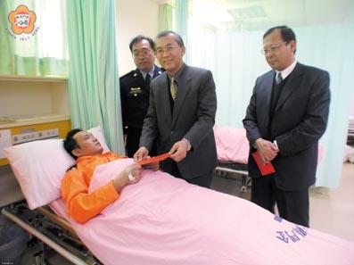 海巡署金門海巡隊登檢查緝走私農產品的中國福建漁船,遭到漁民持刀拒檢,經海巡隊發動攻堅制伏船上三名大陸漁工,連人帶船帶回偵訊依法處理。海巡署海洋巡防總局長鄭樟雄昨日來金慰問三名受傷的隊員,肯定海巡隊捍衛公權力的執勤表現,他也呼籲中國政府管制漁民不要從事不法行為,以免影響兩岸關係和諧。 金門海巡隊前晚在北碇海域查緝走私農產品的福建「閩龍漁F五八六號」漁船,遭到船上三名漁民持菜刀拒檢,挾持登檢的分隊長趙南榮,企圖帶回中國,遭到海巡隊攻堅制伏,不過,也造成二名漁民和三名海巡隊員頭破血流受傷送醫。 海巡署海洋巡防總局長鄭樟雄昨日上午趕抵金門,前往金門海巡隊了解查緝執法過程,並在金門海巡隊隊長翁欣祺的陪同下,到署立金門醫院探望受傷的趙南榮、陳文龍和施志遠三位隊員,致贈每人新台幣一萬元紅包慰問,肯定他們冒著生命危險捍衛公權力表現。 鄭樟雄指出,事發時,海巡署成立緊急應變中心,署長王進旺親自坐鎮指揮,下達人員安全和嚴正執法的處理原則,他也要求依法查緝,維護人身安全,及警械使用非致命性武器,金門海巡隊無論任務組合分工和執法,都能符合要求,大原則做得很好,是一次查緝行動成功的案例。鄭樟雄表示,金門海巡隊一再安撫、勸導中國漁民放棄抵抗,然而漁民拿刀挾持一名隊員要回福建圍頭,在溝通已經仁至義盡下,他下達攻堅指令,海巡隊員以塑膠子彈、催淚瓦斯手榴彈等非致命性武器行動,雖有打鬥受傷發生,但均沒有危及生命安全,確實做到維護公權力。
