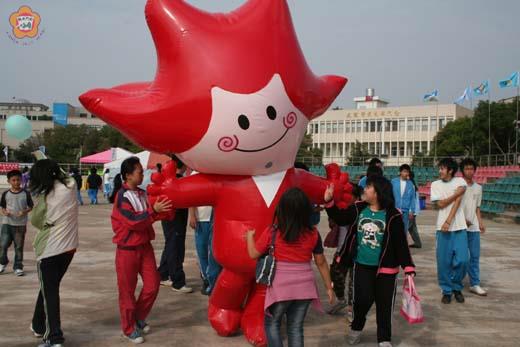 此次的離島聯合運動會主辦單位特別精心設計可愛的吉祥物,「阿澎」、「阿連」與「阿金」三尊吉祥物昨日繞行會場,受到小朋友的熱烈歡迎,大家爭相合影與握手,堪稱是會場的焦點人物。