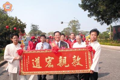 金城鎮賢聚「盧氏家廟」舉行重修奠安大典,福建省政府主席顏忠誠昨天致贈「敦親宏道」賀匾,來自海外及台灣各地的盧氏族人也專程返鄉參與祭典,並獻上匾額,祝禱盧氏裔孫在先人福蔭,人丁旺盛,福澤綿長。 賢聚「盧氏家廟」始建於明末崇禎年間,由進士盧若騰倡建,盧若騰後來擔任兵部尚書,家廟距今有三百六十多年歷史,最近一次重修為一九六九年,這次族人募集新台幣一千多萬元重修家廟,並盛大舉辦奠安大典。 省主席顏忠誠致贈盧氏家廟的「敦親宏道」賀匾,於昨日上午在金城鎮市區舉行迎匾遊行,再於賢聚的家廟隆重舉辦獻匾大典,顏忠誠率領省府秘書長翁明志及各組組長參加,盧氏家廟重修委員會主任委員盧志權、奠安委員會主任委員盧志輝、總幹事盧連城帶領長老、宗親組成的迎賓隊伍熱烈迎賓熱情歡迎。 在金門,顏姓宗親為盧姓的舅家,關係密切,顏忠誠獻匾祝賀,讓盧姓族人感到很有面子,此外,連日來包括縣長李炷烽、縣議長謝宜璋、金指部指揮官楊天嘯等都到場祝賀,使得「賢聚」熱鬧萬分。 來自各地的盧氏族人也絡繹不絕的攜家帶眷到祖廟祭祖,禱佑闔家平安,家廟內沸騰的人聲和鞭炮聲,渲染慶典的最熱鬧高潮。大陸泉州同安古莊、台北烈山五姓宗親、金門四岳宗親組成的慶賀團也遵循金門家鄉古禮來祭拜祖先,讓他們親自感受祭典的隆重氣氛。