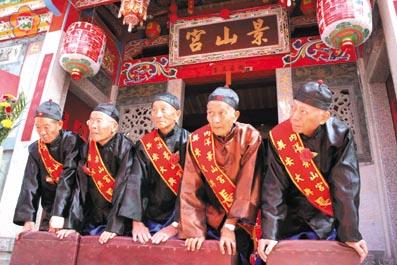 年月日皆利,內洋景山宮擇吉於昨天和前天,連兩日舉行了慶成奠安;希望在奠安之後,神威顯赫,香火長存,神人協吉,民物阜康。 內洋舊稱三鄉,是「蔗埔」(內洋)、東溪、東山的合稱。三鄉的共同信仰就是景山宮。景山宮的境主是廣澤尊王和林府千歲。 三鄉在清代以前屬浯洲嶼十八都滄湖保。民國三十八年之前原有七、八十個未分家的大家戶;如今約有四、五十戶人家。 根據三鄉的長老吳有慶(民國二十年出生)所述,八二三砲戰(民國四十七年八月二十三日)的前一個月,景山宮的廣澤尊王曾透過乩示,要信眾在自家的防空洞頂上預插一面一尺二的黑旗,還要在洞門上貼三張靈符。當時,居民雖然照做,卻不明白其意。 後來,八二三砲戰開打了,全村的房屋,沒有一棟沒有遭到砲火摧殘,但所有的村民,卻沒有任何一人葬身於砲火之下;只有一個身手不便的殘障者,因為無法以正確的方式趴下,受了一點輕傷,由吳有慶送醫。 吳有慶表示,砲戰期間,三鄉沒有一處房屋沒有被砲打到,但景山宮卻完整無缺。 景山宮地基的取得,也是一段傳奇,並有清光緒年間留下的石碑示奇。據吳有慶所述,在清光緒時,廣澤尊王看上了景山宮現有的基址,想要在此立廟,但地主杜尚一家已經絕祀。神魂之間,大概是在異次元裡談妥條件的|杜尚願意讓地興廟,但其他條件不要,只要求三鄉信眾在每年廣澤尊王聖誕時,準備菜、飯和金紙,祭祀杜尚全家。 據吳貴海等人表示,杜尚一家的石碑,原本祀於景山宮外的一間小室;景山宮重建後,才移於護厝。景山宮旁原有屎坑,舊時被認為有興鄉的作用。(可能農業社會,屎料也是寶貴的資源。) 景山宮的護厝中,供有「杜尚一家八月十六日」的石碑,立碑的時間在清德宗光緒十三年(丁亥年)。碑的右上刻有「尊王調主」。 重建後的景山宮,落成於民國八十七年。據三鄉的長老吳太平表示,吳有慶當時出力最大。當年,吳有慶原本要出十六萬,有人說要跟他;吳有慶就將整數改一為二,希望帶動大家多捐一些,於是就捐了二十六萬,但要跟的人以為是二十萬。吳有慶的四個兒子也各捐了四萬,女兒們也捐了數萬。捐款者中,以呂吳蔭治捐三十萬最多。捐二十萬的人有吳永種、吳太平、吳慶林。三鄉信眾中,捐十二萬的人有四人;其他有人捐了十萬,有人捐了八萬。捐五千元以上者,芳名都已刻在景山宮的牆壁上。 景山宮大門的嵌字聯刻有:「景泰神靈廣澤被浯島,山明水秀鴻楨匯內洋。」廟中柱聯刻有:「威鎮安溪,惟忠惟義耀青史,靈昭浯島,乃聖乃神福內洋。」窗聯有:「殿宇巍峨,吉星朗照;神光赫耀,瑞靄祥蒸。」「仁里延禧,國泰民安;崇宮煥彩,心誠神顯。」 在慶成植福的榜單中說明,藉著神明的庇祐,希望讓凶星滅跡,災害不侵,並祈求家家丁財兩旺、富貴雙全、財源廣進、商業繁榮、男增百福、女納千祥、老者康健、幼者聰敏、四時無災,八節延禧。