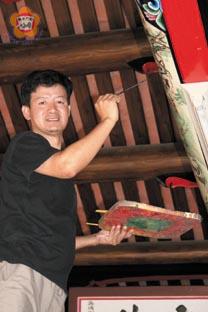 金門賢聚盧氏家廟甫落成奠安,不少鄉人進到家廟中,總會為之驚豔,一幅幅精巧細緻的彩繪作品,串連成盧氏先祖蓽路藍縷的墾荒歷史,這些彩繪作品,全出自盧氏子弟盧根陣的巧手。 有人用相機、有人以文字,盧根陣卻用他的彩筆,紀錄盧氏先祖的故事。 為了盡份心力,盧根陣花了相當多的時間,找典故、看繪本,再加上自己多年的繪畫修練功力,終於完成一幅幅故事般的彩繪畫作。 家廟奠安前,夜深人靜時,常常可以見到盧根陣的身影,搬登高梯、調和顏料,從一扇扇的木門,到一根根的橫樑,一筆一畫地繪出屬於盧氏的故事與歷史。 盧根陣表示,以前家廟的彩繪作品,都畫些花鳥山水、吉祥事物,美則美矣,卻失之樣板,因此,他接下家廟的彩繪任務後,就思考著如何藉由作品,彰顯賢聚的山水風情、盧氏先祖一步一腳印的墾荒過程、歷史傳統,因此,每一幅彩繪作品都是一個個故事的展現,都是盧氏歷史的見證。 走入家廟,向右,可以看到盧氏宗親獻匾迎親的風光場面;向左,可以一覽奠安追龍的熱鬧情況。 右側,有岳飛刺身的大忠大孝;左側,有蘇武牧羊的氣節傲骨。 向上,可以綜觀賢聚地理位置、山水風光,圳仔溝、古官道源遠流長、翻山越嶺,前有浯江溪、痲瘋島,後有金門城、古聚落。庵前、官裡、官路邊、古區,散落兩側,各有風情。 往旁,島鄉北岸盡入眼簾,金廈海域一水相隔,廈門、同安隱隱若現,南、北太武相互爭輝,了然於安居的所在,也能一闊島民的胸懷。 筆名盧根的盧根陣,復興美工畢業,西畫、陶藝本就相當拿手,前陣子還舉辦攝影個展,豐富的戰地意涵與創意,曾引起台金轟動。此次重新拾起國畫彩筆,為的是盡一份盧氏子弟崇仰先祖的心意,這份心意,讓家廟變得更有看頭,也讓祖先們的奮鬥歷史、風俗倫常獲得傳承。