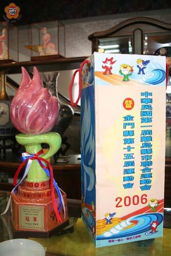 離島聯合運動會專屬獎盃曝光!配合首屆離島聯合運動會,離島聯合運動會籌備處特別精心設計專屬獎盃,總計共打造一百六十八座獎盃,獎盃上面還有三縣市的英文縮寫與精神標誌等,相當別緻,讓人看了眼睛為之一亮。 籌備處表示,配合運動會所打造的獎盃為陶瓷材質,含底座高約四十七公分,獎盃上面有書寫「離島聯運、十五屆金門縣運等字樣,總計冠軍、亞軍、季軍與殿軍四種獎項,共一百六十八座獎盃,希望透過有紀念價值的獎盃,讓得獎者永遠珍藏。獎盃造型為「K」『M』『P』三英文字,背後與底座則有吉祥物、會旗與LOGO等可愛圖案,相當特別。