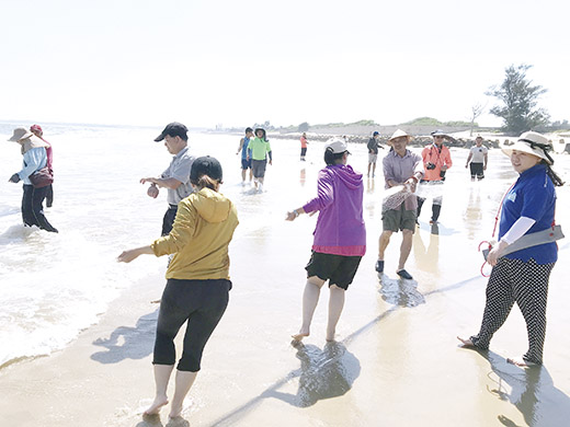 本縣海洋教育資源中心為提供本縣教師參與親海活動及提升海洋素養,配合臺灣海洋教育中心「研商108年度各直轄市、縣(市)推動海洋教育會議紀錄」,辦理「綠階/初階海洋教育者培訓課程」,希望藉由本次培訓課程能激發教師之海洋服務熱忱及擴展海洋思維,並促進現場教師持續從事海洋教育之研發、教學與服務。預期建構海洋教育專業內涵,培訓學校中海洋教育推廣教師,深入校園推動,以建立永續從事海洋教學之機制。 「綠階/初階海洋教育者培訓課程」由教育部指導,國立臺灣海洋大學臺灣海洋教育中心主辦,本縣海洋教育資源中心(縣立金城國中)承辦,主要實施對象為本縣各級學校對海洋教育有興趣教師。學員若完整參與16小時課程,並於課程結束後一個月內繳交教案設計者,經認證後,將列入臺灣海洋教育中心「綠階/初階海洋教育者」人才庫,成為海洋教育推廣教師。 課程分二天進行,第一天於6月12日上午進行「海洋概論/海洋關懷」課程,邀請國立金門大學海洋與邊境管理學系高瑞新教授,講述金門自古以來到現在與海洋之間關係之變化,並就海洋扮演的經濟與國防等方面重要性作介紹,強調金門近年來面對的對岸盜採砂石與海漂垃圾等海洋問題進行詳盡剖析。 下午「體驗教學設計」課程,由臺中市環境輔導團林佩佩老師與中興大學獸醫病理學研究所林正忠副教授共同帶領學員進行金門海域「潮間帶踏趣」,透過地形觀察、五感觀察環境、賞蟹「停、看、聽」三步曲與海濱生態調查與紀錄,體認如何規畫教學現場活動;接著分享海洋教育實例與教學活動設計經驗,進一步導引學員們如何掌握海洋教育融入各領域教學。最後是「海洋教育FUN心玩」,以分組體驗教學活動設計實作與發表賞析,對學員規劃之教案進行逐一說明與提點,建立海洋教育教案撰寫之基礎。 第二天的課程於6月20日,進行「海洋服務」課程,由述美國小劉界宏校長帶領學員至金門東北海岸走察,引導學員反思人類生活型態對環境的影響,將環保意識與海洋保護融入平日教學過程,並介紹學校在推廣海洋教育的各項作為。下午「親海教育」請金門縣成功休閒漁業發展協會(前成功牽罟班),帶領學員至成功海灘講解「牽罟」辦理方式,並帶領學員們下海親身體驗。期望讓學員與海洋親密接觸中,進一步了解海洋與人類文明發展有不可分割的牽連,進而更認識海洋,也利用更多機會去親近海洋。 金城國中校長許維民表示,「綠階/初階海洋教育者培訓課程」呼應了我國「海洋立國」的理念。從推廣海洋教育為起點,強調以「體驗」為發想,期盼各校在推廣規劃海洋教育時,也能以興趣為本,讓學童更了解海洋與自身的關係。