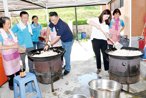 為歡慶端午佳節,烈嶼鄉青岐社區發展協會關懷據點於社區活動中心舉辦粽飄香慶端午活動(如圖),縣長楊鎮浯、烈嶼鄉長洪若珊前往體驗炒粽料,與民同樂,三千個熱騰騰肉粽出爐後分贈各家戶賀節,表達社區關懷村民的一份心意。 一年一度端午佳節將屆,青岐社區發展協會舉辦粽飄香慶端午活動,一大早社區理事長洪長享、總幹事林宜蘭帶領該社區志工媽媽忙著準備粽料以及清洗粽葉,忙著包粽子,一串串粽子高掛在架子上,粽葉飄香,志工把剛煮好熱騰騰、粽香四溢的肉粽分送社區各家戶賀節。縣長楊鎮浯、烈嶼鄉長洪若珊、社會處長董燊、代表會主席方駿洋也前往與民眾同樂過節,受到該社區幹部與志工媽媽熱烈歡迎。