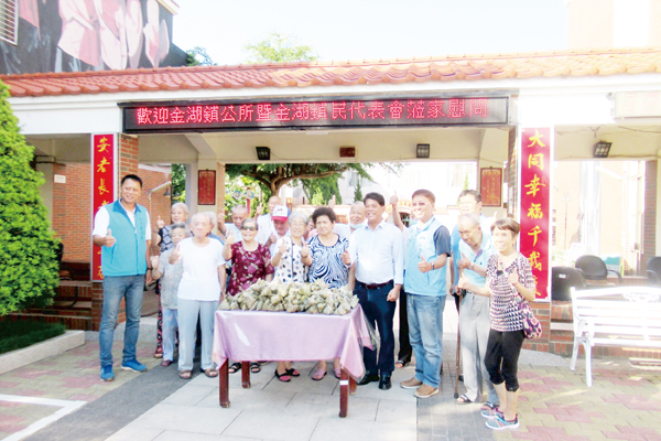 金湖鎮鎮長陳文顧、金湖鎮民代表會主席蔡乃靖20日提前向大同之家的長輩們賀節,並關心大同之家的住宿環境。 金湖鎮公所20日為大同之家的長輩們帶來二百顆的粽子,飽滿的肉粽由山外的鄉親們協助製作,送到大同之家時還是熱騰騰的。大同之家主任楊志斌感謝陳鎮長和蔡主席的到來,表示全球仍在疫情威脅下,無法讓關心長者的鎮公所職員們及鎮代會的代表們悉數到訪,歡迎眾人於疫情解封後再訪。 陳鎮長關心大同之家的住宿環境,楊主任表示院區內有90個安養床、30個養護床,因為收費相對低廉,居住其間又能獲得妥適的照顧,因此成為許多鄉親於退休後的選擇,許多人願意排隊等候入住通知。陳鎮長認為金門大同之家在許多方面優於其他許多縣市,交通便捷就是其中最大的特點,也因此可見到許多趴趴走的長者們,希望長者們在大同之家都能住得健康舒心。