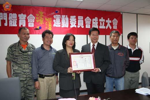 金門縣議會門前上演槍擊?原來是金門體育會漆彈運動委員會昨日在金門縣議會宣告成立,由縣議會副議長許玉昭出任主任委員,縣長李炷烽到場祝賀,雙方期待這項勁爆的運動,能活化利用卸下戎裝的營區,為年輕人帶來揮灑活力的「戰場」,並為金門觀光加分,與會人員並在縣議會門口展開漆彈射擊,奇妙的體驗讓學員大呼過癮! 漆彈運動委員會昨日中午十一時許在縣議會會議室成立,縣長李炷烽特別到場祝賀,並頒授主任委員當選證書給許玉昭,金門體育委員會秘書長辛雷達也頒發團體會員證書,宣布金門第二十八個單項運動委員會成立。其他到場觀禮的還有:漆彈運動委員副主任委員李誠智,台灣挑戰者冒險學校教官張鳳榮,常務委員董燊、李文良、方耀勳,總幹事林本源、副總幹事張輝忠等人。 李炷烽表示,金門在一九九二年開放觀光後,漆彈運動即開始發展,但後來沈寂,直到現在終於有了組織,目前軍方正釋出閒置營區、碉堡,期待在副議長許玉昭領導下,進行活化利用,提供國內青少年休閒活動、挑戰刺激的場所。 李炷烽也提到,漆彈活動可以增進民眾對軍事技巧瞭解,且據聞這項活動未來可望成為世界運動項目,希望大家能好好練習,或許未來也可以像金門籍跆拳好手蘇麗文一般,在世界運動的舞台上,為金門爭光。 許玉昭說,漆彈是一種健康、安全、環保且富於教育性的運動。漆彈運動不分性別、年齡、職業,人人都能參與。漆彈競賽的致勝關鍵決定於個人智慧、意志力、決斷力,而不在於體型、速度、力量的大小。參加者在漆彈場上由學習自我保護開始,逐漸建立自信心,並瞭解團隊合作的重要性。 許玉昭表示,漆彈運動目前為全世界第三名最熱門刺激的運動,在短短15年間,漆彈運動已經成為家喻戶曉且為最令人興奮的戶外活動之一,目前漆彈運動於全球已有40幾個國家參與,且參與的人不分男女老少皆相當熱愛這個既刺激又有趣的運動。 許玉昭認為,金門歷經了不少戰役,也留下許多的廢墟戰場,隨著金門的駐軍逐漸撤走,釋出空置碉堡、營區,提供漆彈運動發展的空間,在年輕人追求刺激的趨勢下,漆彈運動可望成為金門最熱門的運動,也為發展觀光加分。 張鳳榮指出,很高興看到金門漆彈委員會成立,希望往後這項運動可以在金門蓬勃發展,學員們可以好好學習,將來代表國家打奧運,此外,他也期許明年度可以在金門舉辦大型漆彈賽事,廣邀各國好手齊聚金門比賽,應該是場相當不錯的經歷。 金門縣漆彈運動委員會是以金門技術學院運動管理系師生為主要成員,包括縣長李炷烽、縣議長謝宜璋、金門技術學院校長李金振獲聘為顧問。 成立大會上,台灣資深漆彈教官張鳳榮展示漆彈運動的瓦斯槍、漆彈球、頭盔、防彈衣等裝備,並在議會大門前草皮進行試射,雖然不見得大家都能精準的射中目標物,不過漆彈的簡單、刺激還是讓金門技術學院的學生大呼過癮,頻頻說,下次還要再玩。