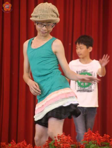湖中校慶最佳男主角! 金湖國中昨歡慶四十一週年校慶,學生搞創意秀才藝,八年五班學生張仲毅在導師陳麗嬌的指導下,大演反串秀,扭腰擺臀,帶領同學上台表演「愛情的恰恰」,受到熱情的歡呼,博得滿堂采!
