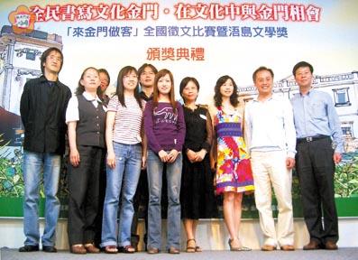 縣府昨(二十六)日下午二時假台北市長官邸,舉辦「來金門作客」徵文、第三屆浯島文學獎頒獎典禮。縣長李炷烽希望透過作家的筆、民眾的眼,來發覺金門的美好。 頒獎典禮由縣長李炷烽主持,文化局長李錫隆、九歌出版社社長蔡文甫、幼獅公司總編輯孫小英、幼獅文藝主編吳鈞堯、金門籍報導文學作家楊樹清、詩人許水富、詩畫攝影作家張國治、楊筑君、張世行、天下文化主筆游常山、金門同鄉會理事長黃獻平、金門友人黃金文等藝文界人士,出席觀禮。 李炷烽表示,「透過民眾跟學者觀察,金門的特色,果然盡收眼底」。他希望透過作家的筆、民眾的眼,來發覺金門的美好。而針對時事,李炷烽也指出,台灣施政陷入政黨惡鬥,實非民眾之福,若以看待好鄰居的方式,觀照大陸的崛起,也許能找到施政的方向。 文化局表示,這次活動,獲得金門相關產業的協助,才能順利完成,因此,相當感謝聖祖貢糖、金合利鋼刀、香蜂一條根、上古厝麵線與浯州陶藝的熱情贊助。產業代表白秀娟,特別代表致詞,歡迎民眾到金門觀光之餘,也不要忘記金門的菜刀、貢糖、一條根等產品,不管是自用或送禮,都是非常好的伴手禮。 「來金門作客」徵文獲幼獅公司|幼獅文藝的協助,於今年九月徵文截止、十月揭曉,十一月幼獅文藝並製作「一個島嶼、一個夢」專題,刊登得獎作品,以及重量級學者劉再復,拜訪金門的報導。 文化局指出,為了讓徵文活動更加普及,特別分成「社會組」跟「少年組」兩個組別。來稿擴及全國,更有多位廈門同胞投稿,顯見小三通後,金門、廈門兩地的情感跟文化交流逐漸熱烈。 有人說,「金門是臺灣男人共同的鄉愁」,這次徵文,也有很多退伍士官兵參加,另外,來稿亦有許多遊覽紀勝,可見金門觀光的興盛。多數稿件,敘述金門的美,讓人流連忘返,對金門建設也有建言。短短百言、千字,都表達出對金門的關心跟支持。 至於第三屆浯島文學獎,徵選類別分為散文、小說二組,散文組內容須與金門有關,以金門旅遊印象、金門鄉鎮書寫為主,字數以三千字為準;小說組內容以金門為書寫題材,敘事符合金門當地背景,凡主題健康,內容可引發人心向上者均可,字數三千至五千字。 小說組初審為黃克全、陳秀端、蔡振念,複審為吳鈞堯、許維權、陳長慶;散文組初審是石曉楓、楊樹清、張國治,複審為王先正、洪春柳、顏炳洳。 「來金門作客」徵文得獎名單如下: 社會組| 金門文化獎三名:黃文正、宋明亮、方秋停。 (贈送價值二萬元金門五寶|風獅爺、菜刀、貢糖、麵線、一條根等民俗特產;金門、台北雙人三天兩夜旅遊券,及金門貢糖禮盒乙組;暨一年份幼獅文藝) 優勝十名:林欣怡、鄭淑凌、周衍良、歐陽嘉、藺奕、鄭丞均、江琦敏、胡遠智、張慧玲、甘炤文。 (贈送價值一萬元金門五寶|風獅爺、菜刀、貢糖、麵線、一條根等民俗特產;金門、台北雙人兩天一夜旅遊券,及金門貢糖禮盒乙組;暨一年份幼獅文藝) 佳作十名:董惠娟、劉秀燕、賴彩美、方淑、林憶婷、丘樹華、張再勇、陳雯琦、陳宣輔、許家源。 (贈送價值二千元金門五寶|風獅爺、菜刀、貢糖、麵線、一條根等民俗特產;暨一年份幼獅文藝) 少年組| 金門文化獎三名:吳威洋、盧怡文、蕭筑元。 (贈送價值二萬元金門五寶|風獅爺、菜刀、貢糖、麵線、一條根等民俗特產;暨一年份的幼獅少年) 優勝五名:陳怡臻、呂妍、楊雲瀚、陳毓雯、江芳瑜。 (贈送價值一萬元金門五寶|風獅爺、菜刀、貢糖、麵線、一條根等民俗特產;暨一年份的幼獅少年) 佳作十名:李介盛、陳柔雅、翁聞慧、許婕相、許緗君、陳景彝、王郁雁、許舒雯、賴信榮、吳鵑如。 (贈送價值二千元金門五寶|風獅爺、菜刀、貢糖、麵線、一條根等民俗特產;暨一年份的幼獅少年) 第三屆浯島文學獎得獎名單為: 小說組| 首獎:從缺。 第二名:楊忠彬︿家信﹀,獎金新台幣貳萬元,獎牌乙面。 第三名:方秋停︿藍色料羅灣﹀,獎金新台幣一萬元,獎牌乙面。 佳作:費啟宇︿水獺﹀,獎狀乙紙,並刊登金門文藝,稿酬從優。 散文組| 第一名:藺奕︿蕪島﹀,獎金新台幣參萬元,獎牌乙面。 第二名:劉思坊︿邊境的島嶼﹀,獎金新台幣貳萬元,獎牌乙面。 第三名:吳淑鈴︿雜貨店之歌﹀,獎金新台幣一萬元,獎牌乙面。 佳作:翁國鈞(禁忌海峽)、歐陽嘉(紅頭嶼)、余益興(守著你守著我)、黃姿容(碉堡旁的西瓜田)、柯榮三(戰車走過‧洋樓古厝)、甘炤文(來自熱帶的明信片)等六人,各獲獎狀乙紙,並刊登金門文藝,稿酬從優。