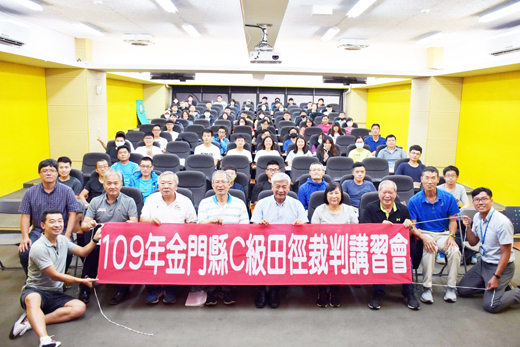 金門縣立體育場昨(12)日開始在金門大學辦理本縣C級田徑裁判講習,此次研習共計有82位學員報名參加,進行為期3天24小時的馬拉松式課程,所有學員除授課期間嚴格管控出席率之外,最後的筆試測驗需達80分以上者,才能取得中華民國田徑協會頒發之C級田徑裁判證。考試通過的學員將優先錄取擔任22屆縣運會田徑裁判工作,學以致用,厚植本地專業裁判人力。 金門縣立體育場場長董燕輝在開幕時表示,感謝金門體育會及承辦單位田徑運動委員會的努力,促成此次研習順利開辦。此次講習特別邀請中華民國田徑協會秘書長王景成,副秘書長劉富福、邱為榮,地方A級裁判李榮商老師、許績勝老師、王勇智老師等六位講師協助專業授課,蔡麗娟老師則講授兩性教育之課程,課程豐富也頗具難度,勉勵在場參加學員均能悉心學習,順利通過考試,取得證照。金門體育會理事長唐麗輝則表示,由衷感謝中華民國田徑協會對金門縣的諸多支持,特別是協會對於許績勝、何盡平、陳彥維在運動生涯的照顧,才讓金門田徑可以在全運會上嶄露頭角,金門子弟任勞任怨、勤勉不懈的特質非常適合競技運動,期待在各級學校、田委會、體育會及教育處的通力合作之下,創造更多金門之光,用運動打響金門之名。 金門體育會田徑運動委員會主委李尚傑表示,感謝中華民國田徑協會秘書長王景成、教育處處長羅德水、金門縣立體育場場長董燕輝、金門體育會理事長唐麗輝、金門大學林本源主任出席田徑裁判講習的開幕儀式,顯示中央及地方對於田徑運動的支持,金門地區甚少體育相關研習能有這麼多學員參與,心中感動萬分,期待這三天學員都能收穫滿溢,專業精進,最重要的是取得證照,為家鄉貢獻一己之力,成為金門體育運動前進的一份子。 中華民國田徑協會秘書長王景成則感性的表達對於金門的情感,因身兼桃園體育會秘書長長達22年,其中因為田徑及體育會的交流來到金門多達二十餘次,每一次的到來都受到金門各界熱情的招待,金門高粱的濃烈順口就如金門人的熱情一般,令人印象深刻,此次受邀前來協助辦理講習會,兩位協會副秘書長都是國內一等一的講師,肯定能讓大家獲益良多,最後勉勵學員都能取得證照,未來對於裁判有興趣的學員也可以在三年後繼續考B級裁判,就能在全國賽中擔任執法工作,為基層田徑盡一份心力,讓台灣田徑更好。