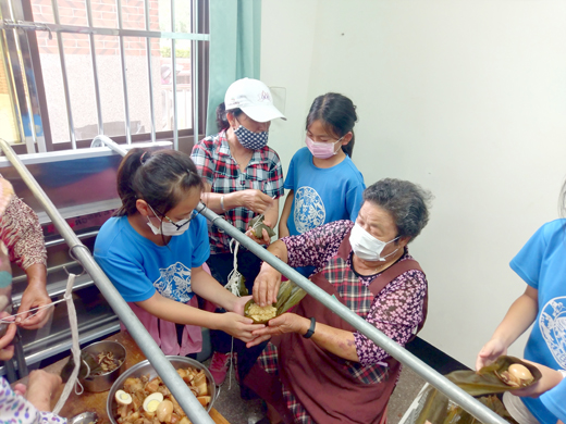 端午節即將到來,金寧鄉古寧頭社區關懷照顧據點辦理「端午包幸福、傳愛獻粽情」活動,邀社區長者與古寧國小同學一起包肉粽,很多小朋友第一次綁肉粽,感覺新鮮又有趣,綁好的肉粽也分享給弱勢家庭,讓小朋友學習與人分享。 金寧鄉古寧頭社區關懷照顧據點辦理「端午包幸福、傳愛獻粽情」,許多志工一大早就做好準備,包括洗粽葉、備料、炒料等,並邀請社區關懷據點的志工媽媽擔任指導員,傳承包粽子的技能。 志工媽媽指導小朋友從如何疊2片粽葉、放入糯米、豬肉料、紮粽葉、繫緊繩子,慢慢學會包粽子,越包越順手完成數十顆的粽子,自己驚喜,也很期待家人能吃到他親手包的粽子。古寧頭社區總幹事李俊龍表示,早期農村時代,端午節家家戶戶會綁粽子過節應景,現代人因為忙碌及準備粽料費時,大都購買煮熟的粽子,小朋友很難有機會體驗包粽子,這次舉辦包粽子活動,邀同學一起體驗。 古寧國小五年級與幼生小朋友在校長黃芸芸與老師帶領下參加包肉粽,許多同學雖然第一次綁肉粽,但因平時幫忙做家事,手腳俐落,在志工媽媽指導下很快就綁好一顆肉粽。幼生小朋友也在志工媽媽指導下體驗包肉粽,他說要把肉粽塑造成型最困難,不但形狀要漂亮,還不能漏出餡料,因為是第一次綁肉粽,他感覺很新鮮有趣。