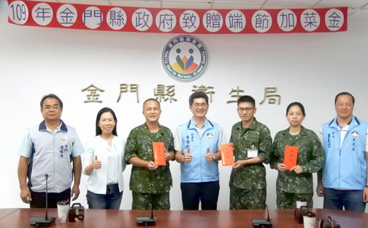 端午佳節將至,縣府昨由副縣長黃怡凱領軍分赴海、岸巡及金防部、金門醫院,向海防第一線執法人員,長期投入支援後送工作之國軍弟兄以及守護鄉親健康之醫院團隊表達感謝,並致贈加菜金,提前向所有人祝賀佳節。黃怡凱表示,佳節到了,特別感謝國軍、醫院團隊等單位24小時待命,協助後送等鄉親醫療勤務,讓鄉親順利找回健康和守衛海防安全,期許未來持續緊密合作,共同努力為鄉親服務。 金門縣政府,昨日下午2時起,由副縣長黃怡凱代表縣長楊鎮浯,展開端午節勞軍行程,在金門縣衛生局代理局長李金治、民政處科長王志仁、軍人之友社組長陳偉棠等人陪同下,分別走訪海巡署第九海巡隊(料羅)、海巡署金馬澎分署第九海岸巡防隊(尚義)、衛生福利部金門醫院。並於衛生局會議室,慰問金門縣衛生局、金防部、金門守備大隊機步營、陸軍金門地區支援營醫療連等單位,各致贈加菜金新台幣2萬元(金防部6萬元),感謝各單位每一位同仁,長期對海防、鄉親後送、以及民眾醫療照顧和衛生保健及新冠肺炎(COVID-19)防疫工作之辛勞。 金門縣政府指出,金門守備大隊機步營每週二、五協助載送急重症病患軍機場搭乘C130赴台就醫,海巡支援二線烈嶼鄉病患夜間載運、緊急醫療轉診至金門醫院就醫及安寧返鄉等載運事宜的愛民表現。支援營醫療連長期支援金門縣大型活動醫護及例行後送病患接送,岸巡隊積極查緝走私維護本縣治安。此外,金門醫院則肩負金門在地鄉親、台商及旅客之醫療照護重任,故在端節前夕特組團前往勞軍,由副縣長黃怡凱帶隊,代表縣府及鄉親感謝所有人員的努力和付出。另外,也要藉此向空勤總隊協助金門載運緊急傷病患空中運輸轉診作業之辛勞。 金門縣政府端節至海、岸巡、金防部、金門醫院慰問行程,於昨日下午2時起展開,副縣長黃怡凱,在衛生局及民政處陪同下前往致贈加菜金慰問所有人員辛勞及祝賀佳節,分別由金防部副指揮官張永文、金門醫院院長侯重光、金門守備大隊機步營輔導長楊靜安、支援營醫療連連長孫凌龍、海巡隊隊長曾忠智、岸巡總隊隊長吳建冠等代表接受,並率全體工作人員表示謝意,彼此也互祝端節快樂。 副縣長黃怡凱指出,特別代表縣長楊鎮浯,於端午佳節前夕,走訪各單位,感謝國軍、醫院團隊等單位24小時待命,協助後送等鄉親醫療勤務,讓鄉親順利找回健康,海、岸巡第一線人員守衛海防保護鄉親安全,期許未來持續緊密合作,共同努力為鄉親服務。 金防部副指揮官張永文少將指出,防衛部將本於軍民合作創造雙贏之契機下,全力協助縣府及鄉親服務工作,也代表金防部軍士官兵感謝縣府之慰勞。衛生福利部金門醫院院長侯重光也指出,此次疫情期間全體同仁都處於緊繃的狀態,縣府到訪慰問讓同仁獲得肯定,也紓緩長久以來之壓力。而配合中央疫情中心宣布6月7日解封新生活,金門醫院也在中央規定下,進行管制上之調整,以讓鄉親方便,但仍有相關規定,例如維持配戴口罩以及實名制和時段及人員之管控等。最後,也代表全體同仁感謝縣府到訪慰問和關心。 衛生局代理局長李金治表示,除了要感謝金防部等長期以來對例行後送病患接送等工作之協助。也要藉以呼籲鄉親,目前進入後防疫時代,金門這段期間在全體軍民、中央地方單位,齊心合作下,目前零確診。但伴隨中央邊境不同政策解封發展時,防疫觀念仍要全民共同落實。防疫新生活,用肥皂勤洗手,在人潮眾地方無法維持社交距離配戴上口罩,個人做好健康管理,並隨時配合中央和縣府疫情之政策,如此,對於未來之生活仍相當有信心。